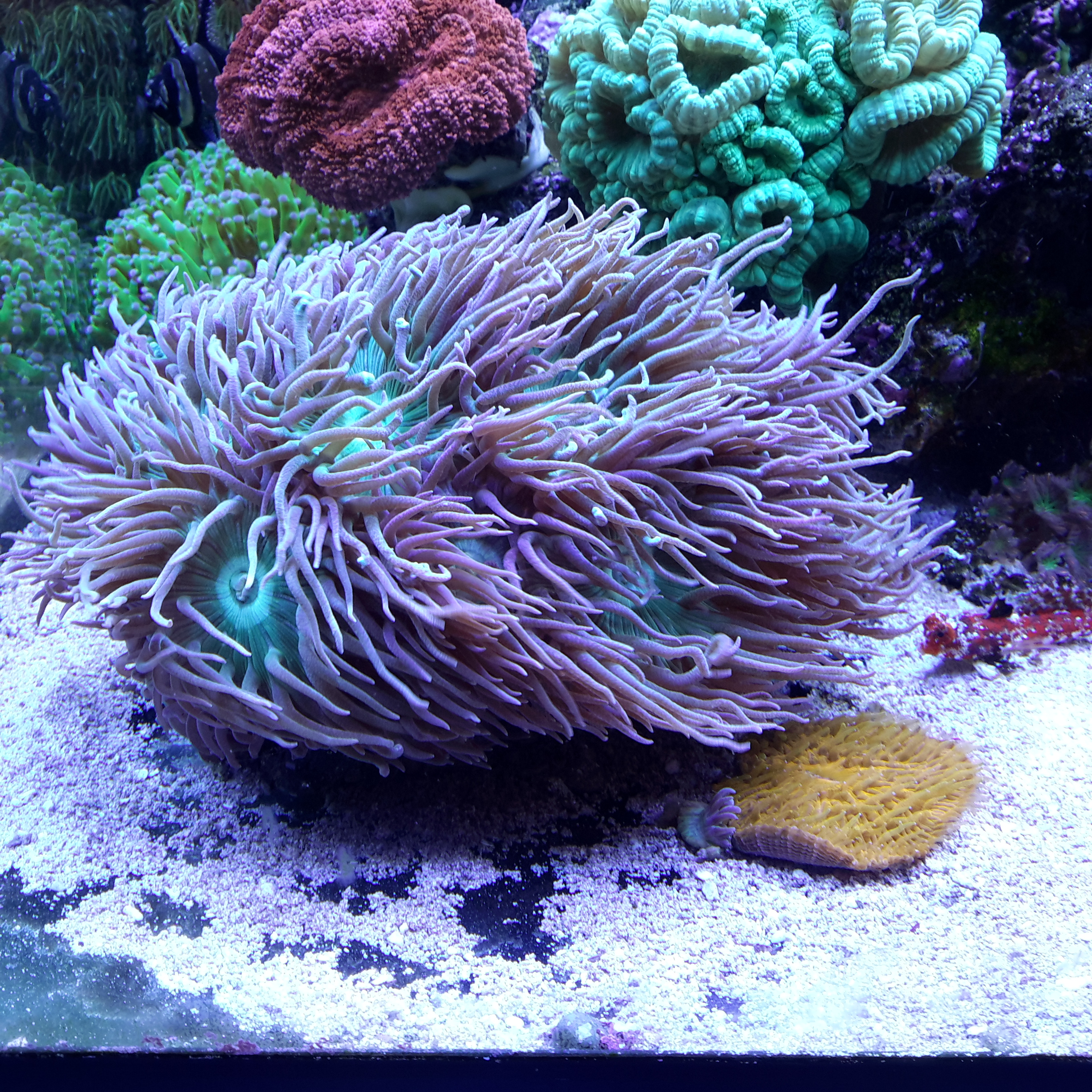 Ich habe wie ihr ja wisst eine eher schwierige Einlaufsphase im Becken. Es läuft nun schon 6 Wochen und seit 4 Wochen sind Fadenalgen im Becken und Wachsen obwohl sie immer wieder mal Abgerupft werden (was eher schwirig ist, da sie extrem glitschig sind und sehr fein, mann kann sie kaum greifen) Die Ersten Testkorallen sind nun seit zwei Wochen im Becken. Im Becken schwimmen seit vier Wochen ca. 17-18 Turboschnecken und 17-19 Einsiedler. Seit eineinhalb Wochen sind ja zusätzlich noch zur Algenvernichtung einen Salarias fasciatus und zwei Valencienna puellaris ins Becken gekommen.