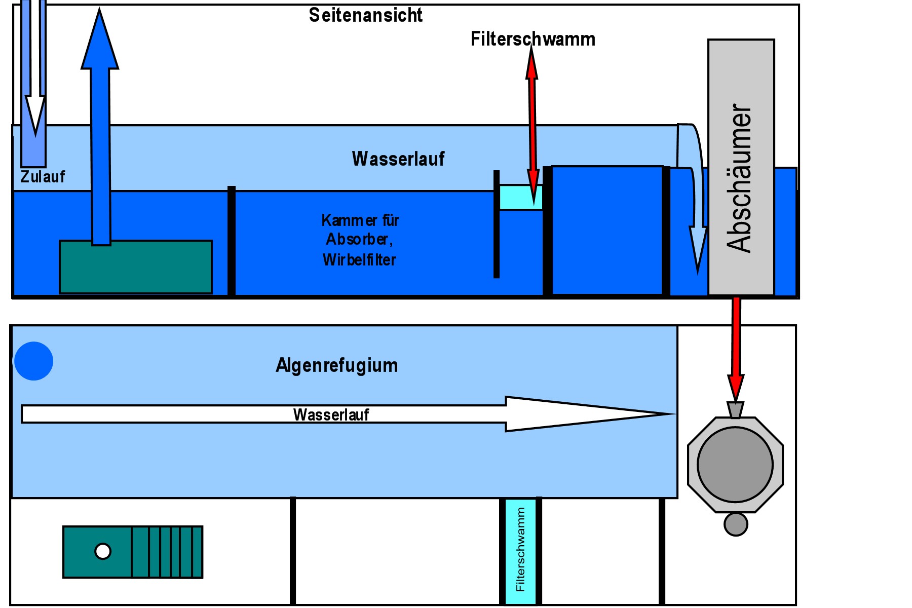 Am Abschäumer selbst gibt es hierzu noch den Schieber am Auslauf, um den Wasserstand in der Reaktionskammer zu regeln.