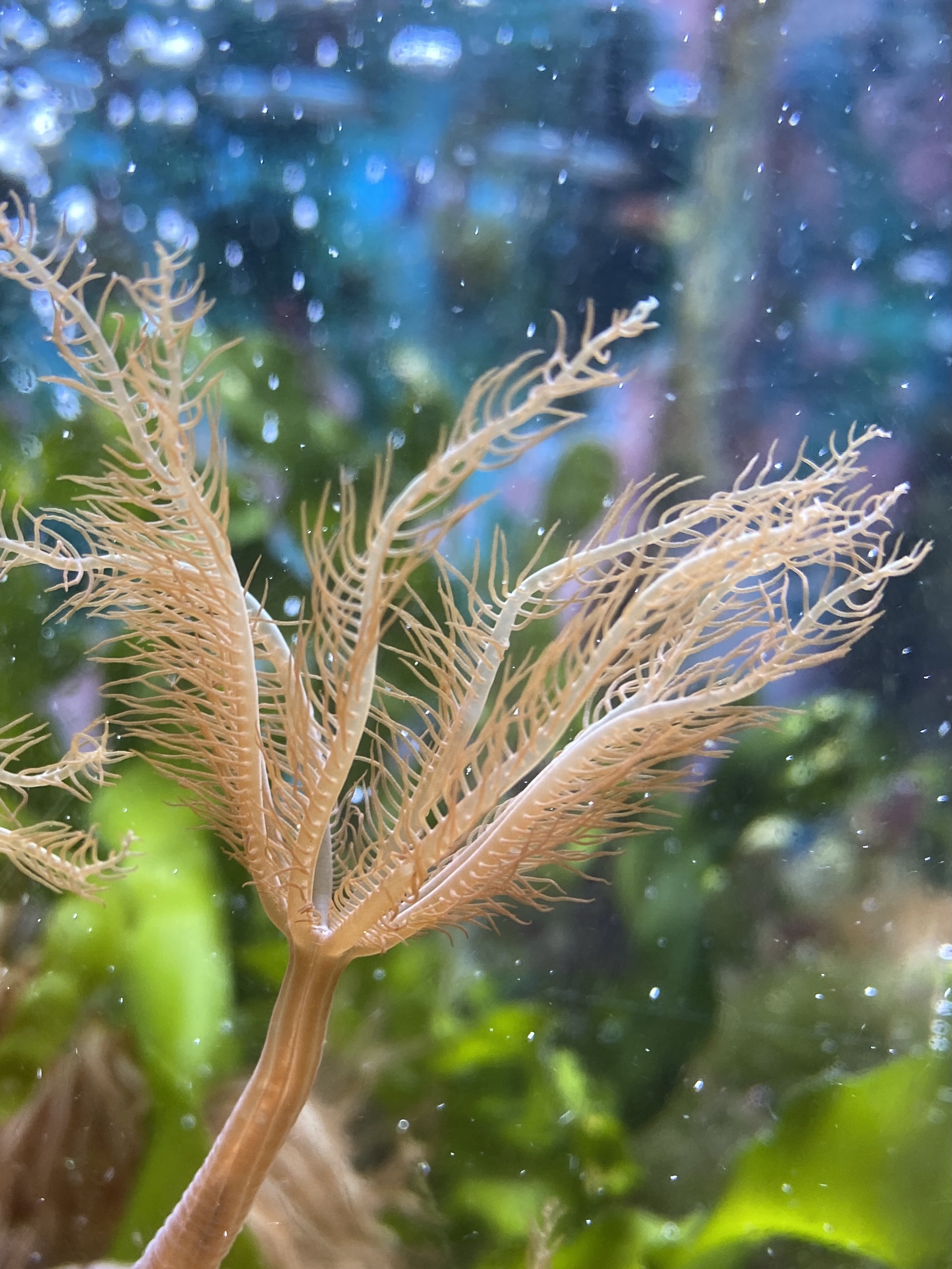 Beim Vorbesitzer lebte das Tier nach dem Tod seines Männchens mit Axotls und Schwertträgern in einem Süßwasserbecken und machte trotzdem einen munteren Eindruck. Man sieht, wie anpassungsfähig die Viecher sind.