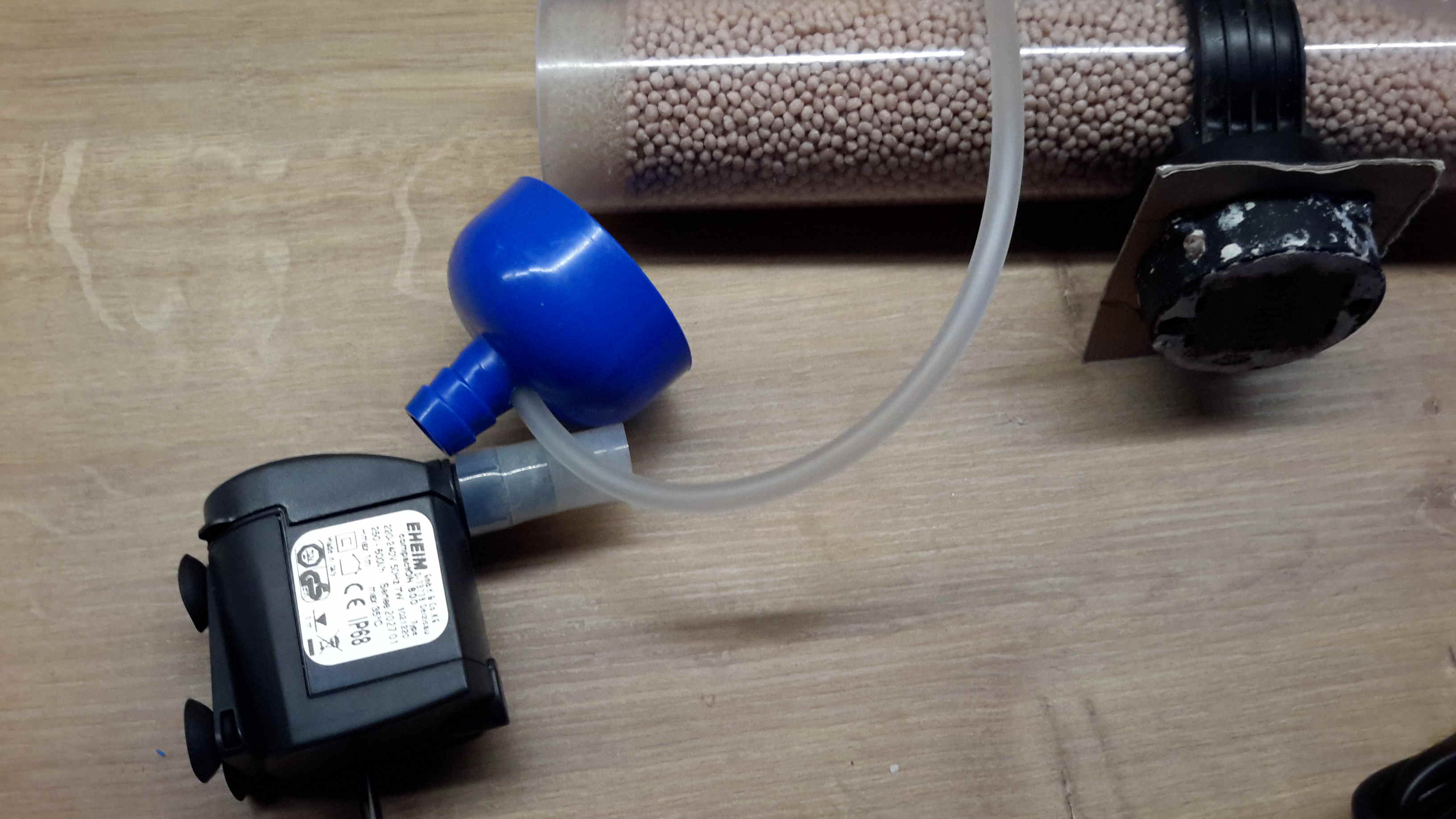 Ein kleiner Heizstab und ein alter Filter waren noch vorhanden, ebenso etwas Korallensand und Mangrovenwurzeln. Beim Wassermischen verwendete ich den Dichtemesser nur als Anhaltspunkt.
