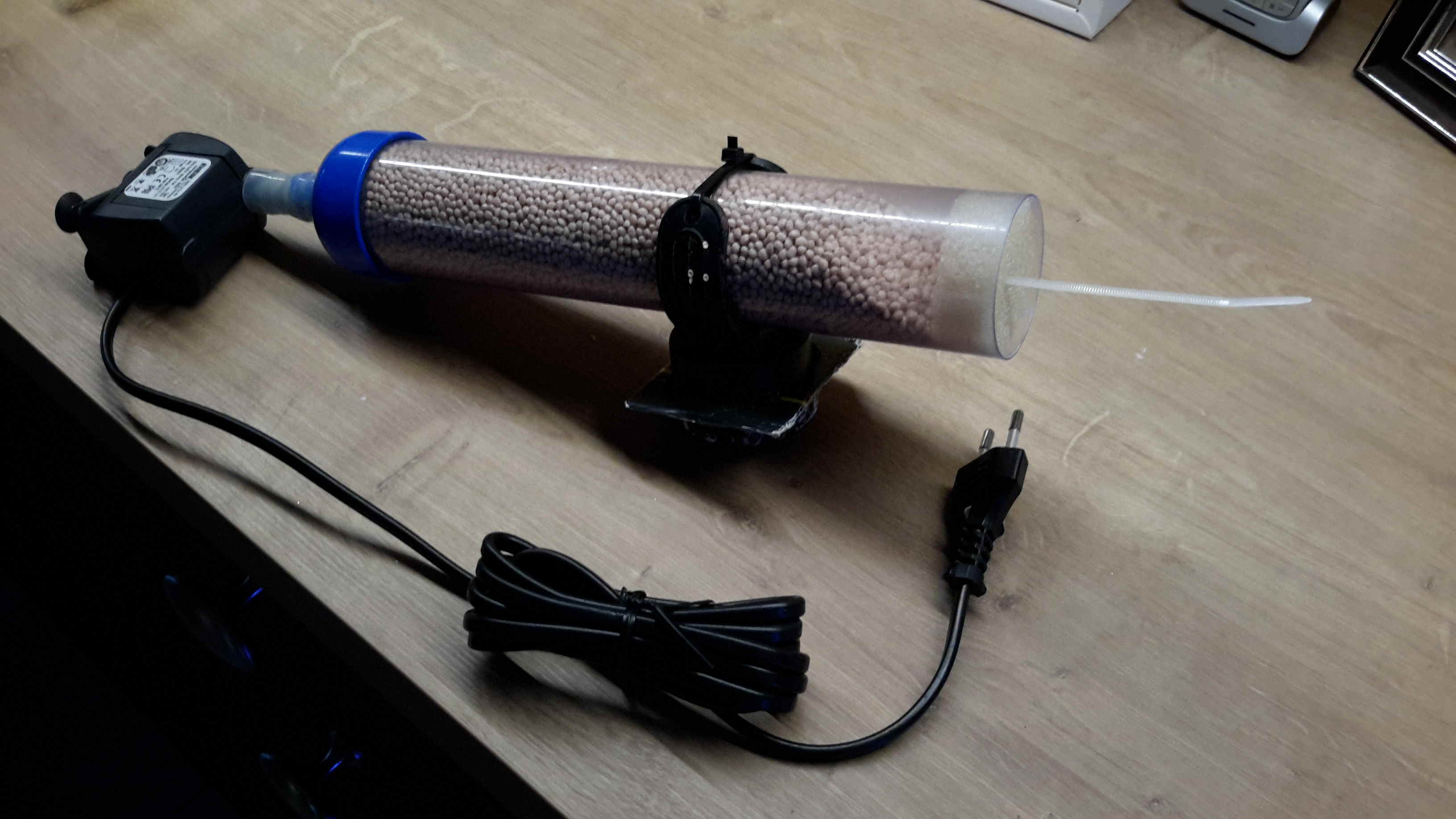 Hier ist auch der Filter zu sehen, ihr Einstieg in diesem Falle. Das Geschmiere im Vordergrund ist Aquariensilikon (drauf damit, gib ihm Essig-Saures). :D