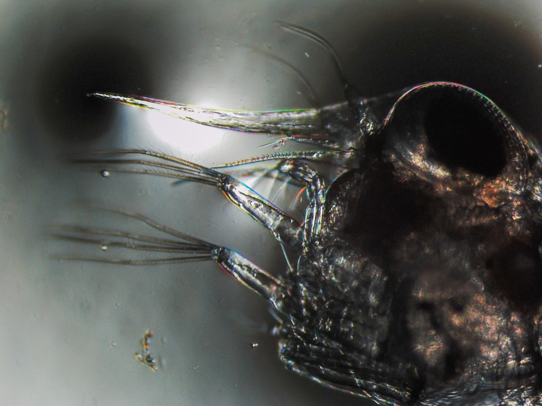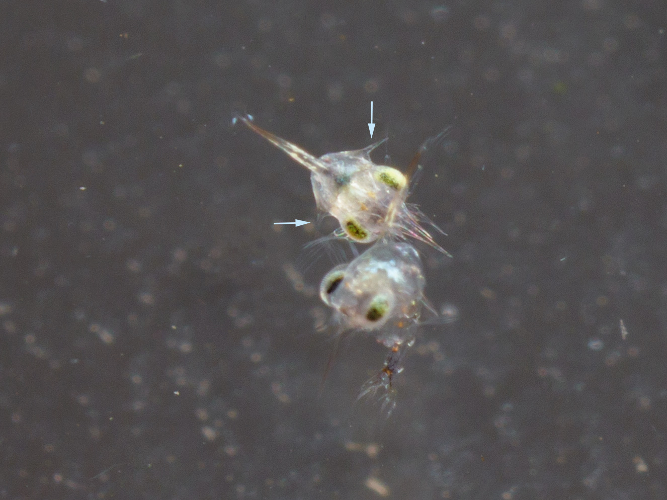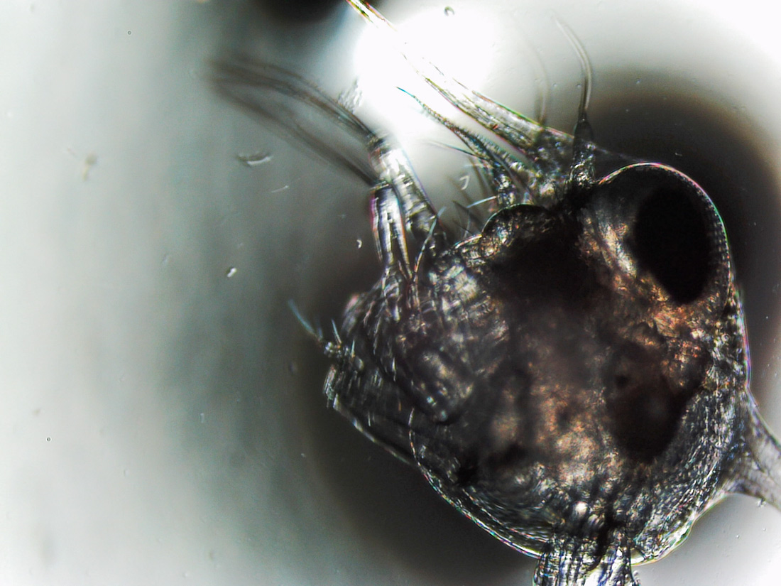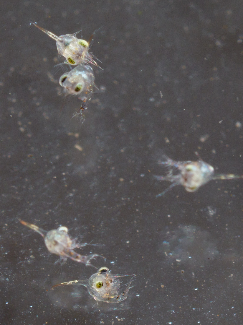 Obwohl die "Mama" ja recht groß ist, die Larven haben die gleiche Größe, wie alle Krabbenlarven.