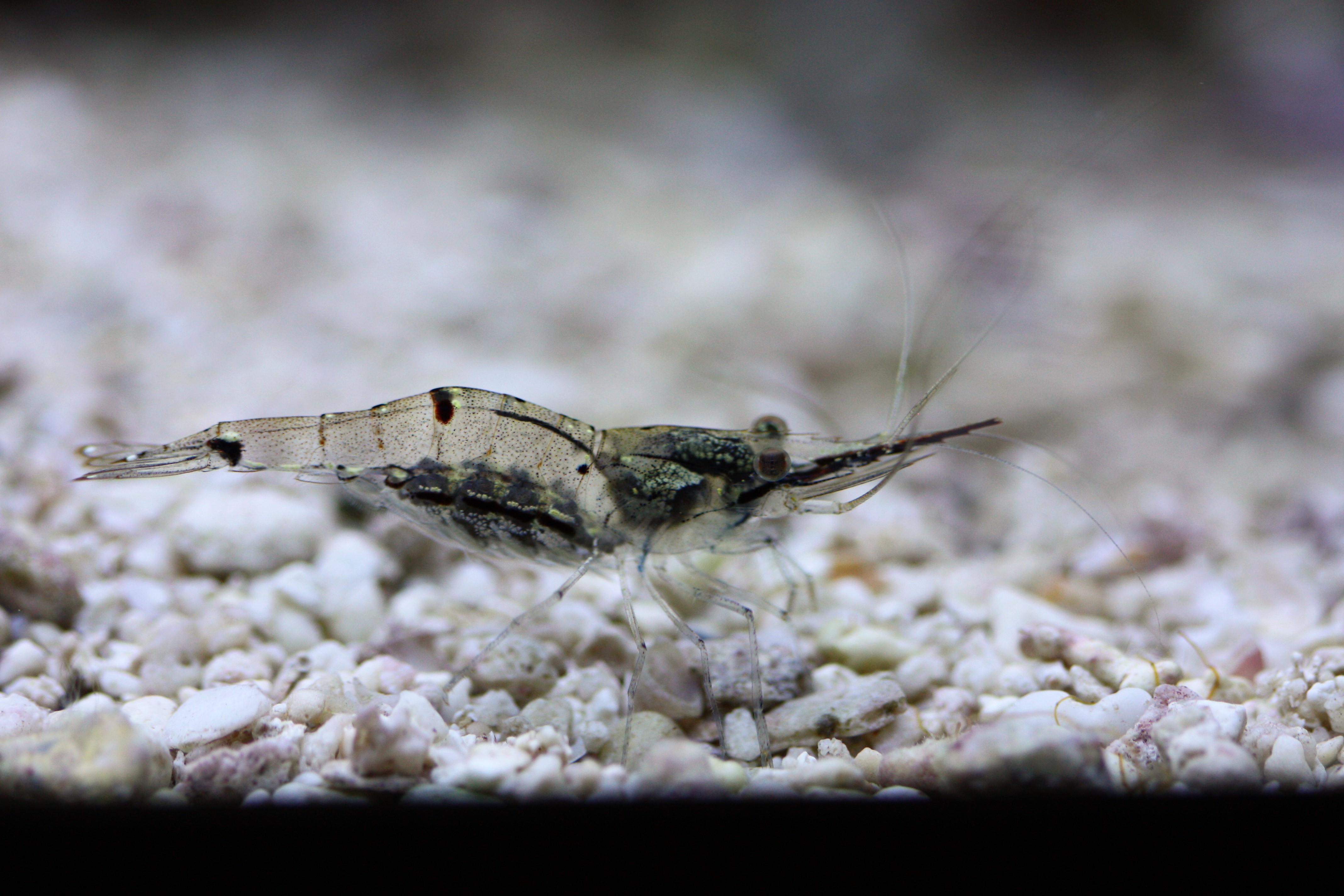 Die Eier sind auch noch nicht sehr weit entwickelt, man sieht noch keine Äuglein. Eine treibt sich fast nur an der Scheibe herum, die andere steckt in den Austernschalen. An der Carapax-Zeichnung sind sie sehr gut zu unterscheiden.