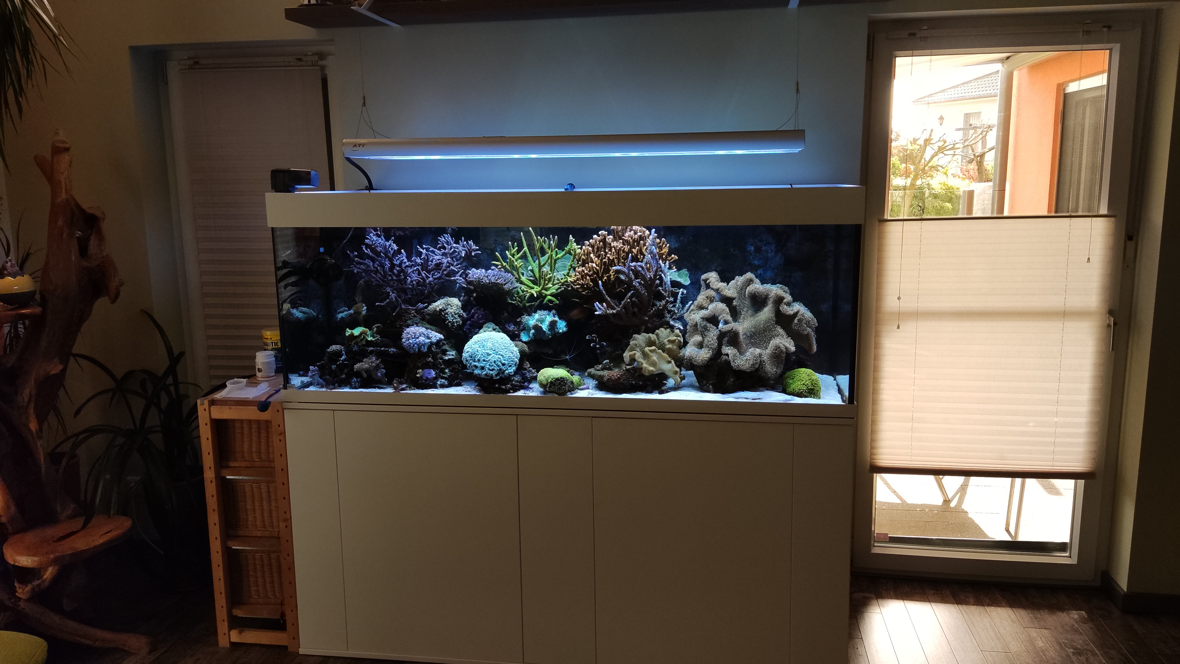 Gestern sind meine 15 Uferkrabben in ihr neues Domizil umgezogen. Aus einem Standard-60er in mein altes 100x30x30cm-Aquarium. Beleuchtet wird das ganze wieder mit der Maxspect Glaive, die ich aber recht weiß eingestellt habe, da Uferkrabben ja eher oberflächennah leben. Außerdem habe ich sie auf 16W runtergedimmt, das reicht für die Algen.