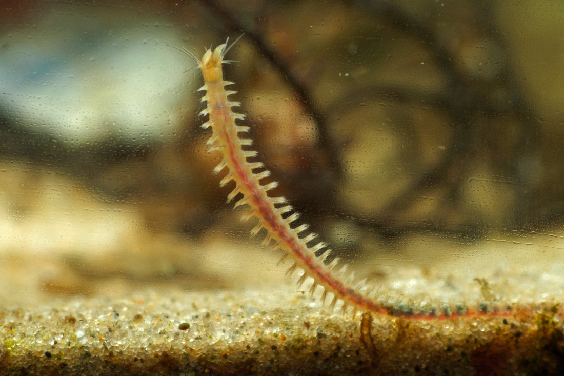 Dieses olle Würmchen hatte meine zottige Meersaite verspeist, er hat sie einfach in den Boden gezogen