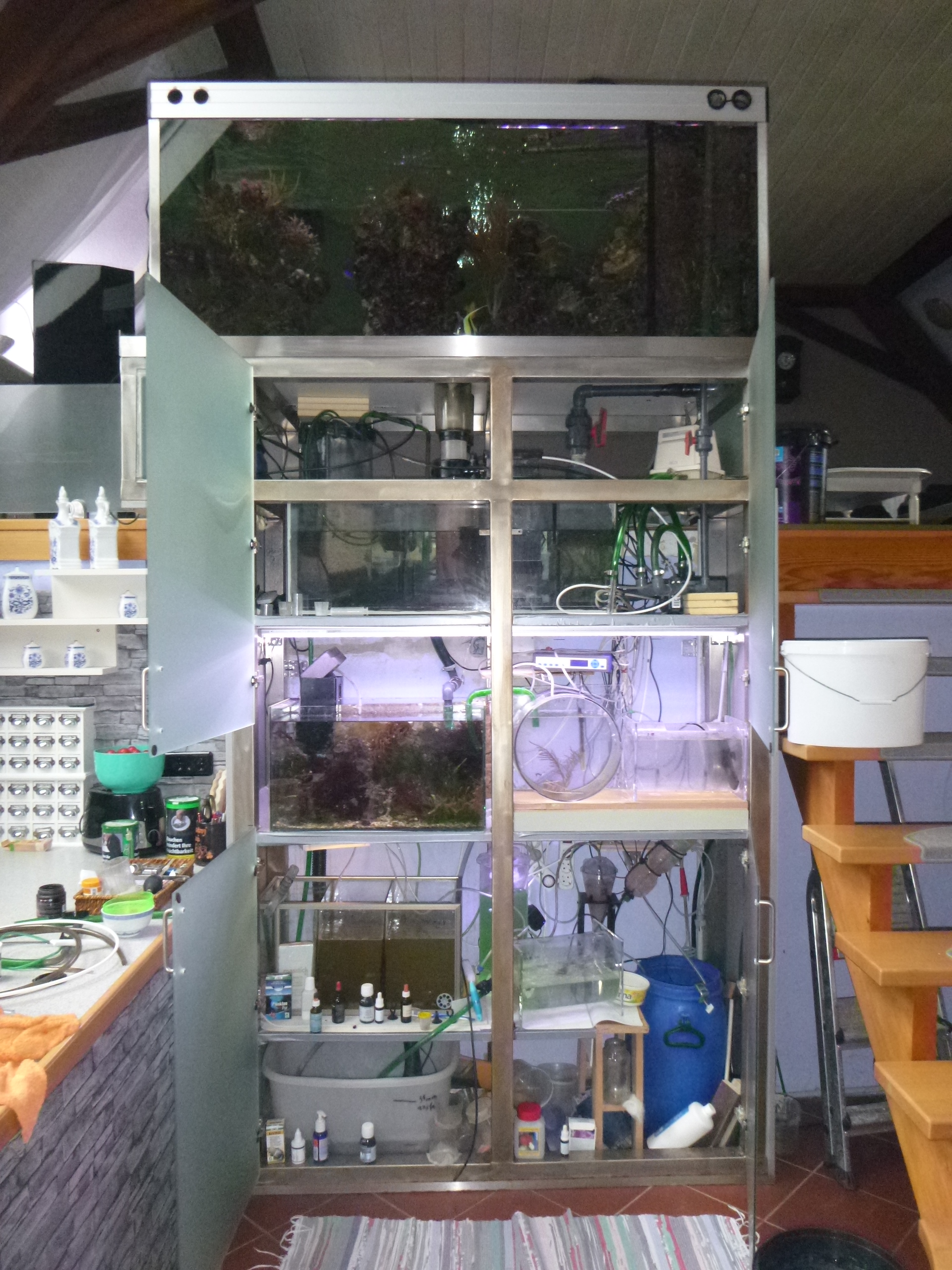 Darunter das Phyto und Zooplankton. Im Wintergarten stehen noch 3 Stück 60 ltr Becken mit Artemia Cops Brachionus