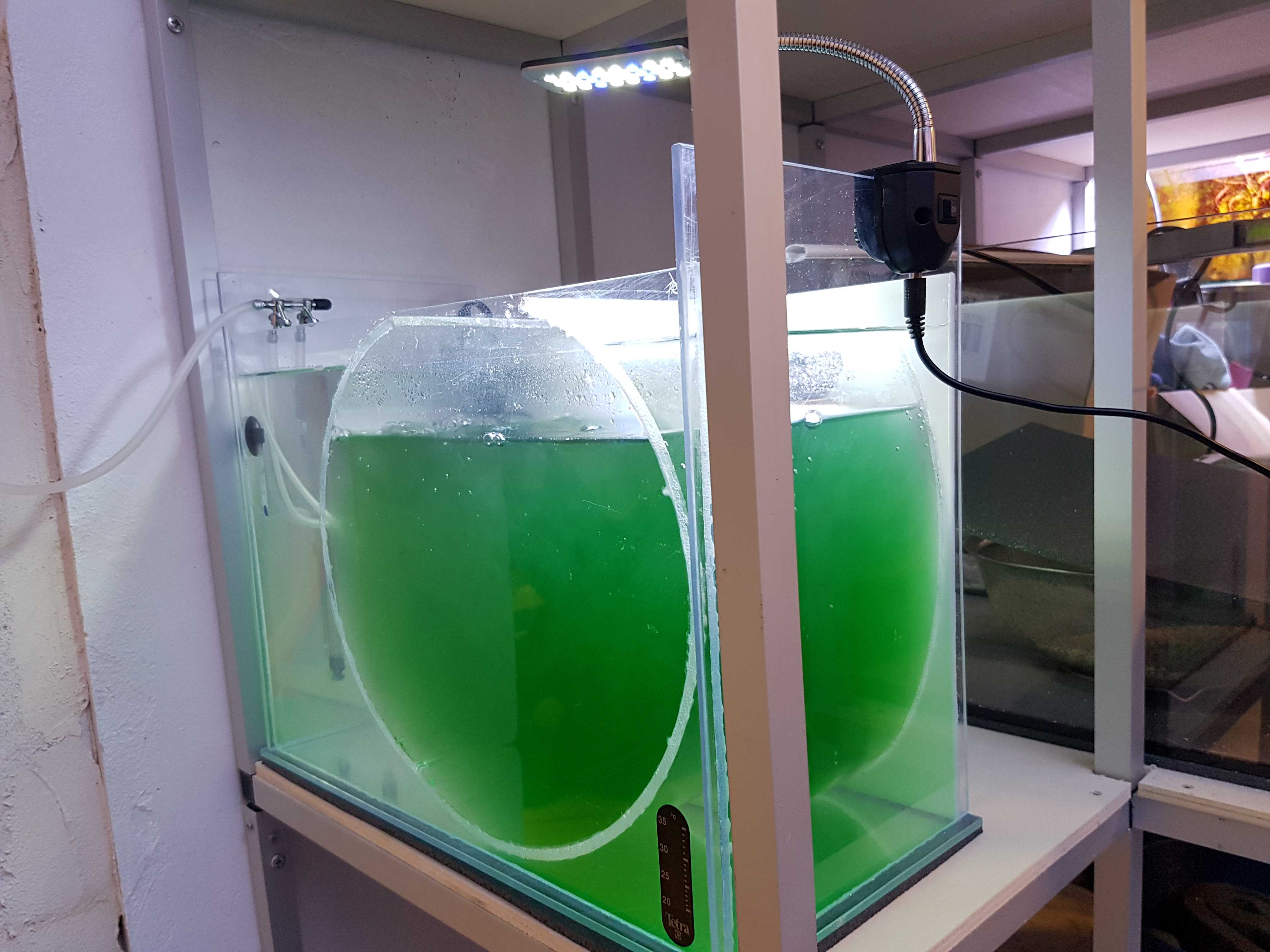 - ich möchte eine kleine Zucht Anlage bauen allso Zucht kreisel ich habe ein 60l aquarium rum stehen wo ich überlegt habe irgenwie 2 zuchtkreisel ein zu bauen wo ich am 14 Tag wenn man artemia fütter ein Abschäumer ein zu bauen so das das Wasser immer sah er bleibt ich weiß nur noch nicht wie ich den Gedanken um setzte über Top bin ich der dankbar