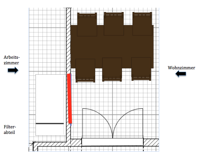 Das Aquarium soll im Arbeitszimmer angrenzend an die Wand zum Wohnzimmer gestellt werden. In diese nicht tragende, gemauerte Wand möchte ich einen Durchbruch machen lassen, so dass man das Aquarium von beiden Seiten sehe kann. Der Durchbruch wird vermutlich ca. in Größe (etwas kleiner) des Glasaquariums erfolgen und das Aquarium bündig an die Wandseite des Arbeitszimmers gestellt. Es wird also nicht durchgeschoben und damit hätte ich von der Wohnzimmerseite aus vor der Glasscheibe einen sichtbaren ca. 10 cm tiefen „Mauerrahmen“. Diese Vorgehensweise hätte ich für mich ein paar Vorteile, bspw. weniger Aufwand/Kosten durch kleineren Mauerdurchbruch, bessere Erreichbarkeit der Frontscheibe vom Arbeitszimmer,etc..