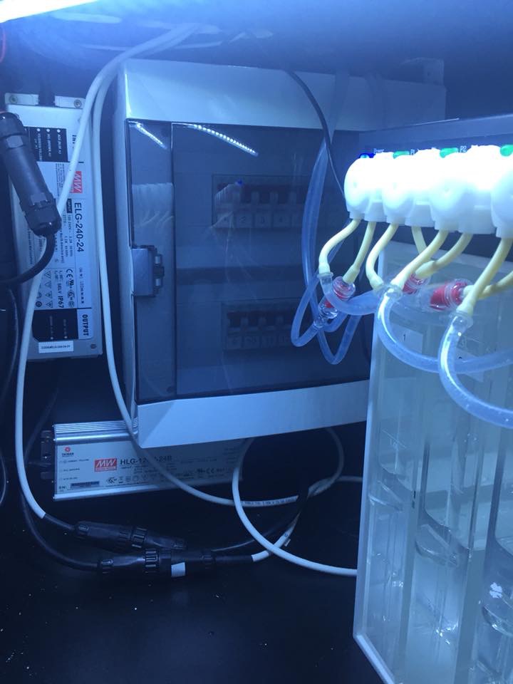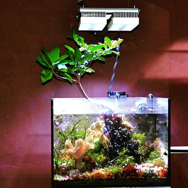 Noch ein Nice-To-Have bei der Mangrovenhaltung: ein Besprühsystem aus der Terraristik. Erhöht die lokale Luftfeuchtigkeit um die Mangroven und fördert damit Wachstum und auch gesundes Aussehen. Netter Nebeneffekt ist, dass dabei gleich etwas Verdunstungswasser nachgefüllt wird.