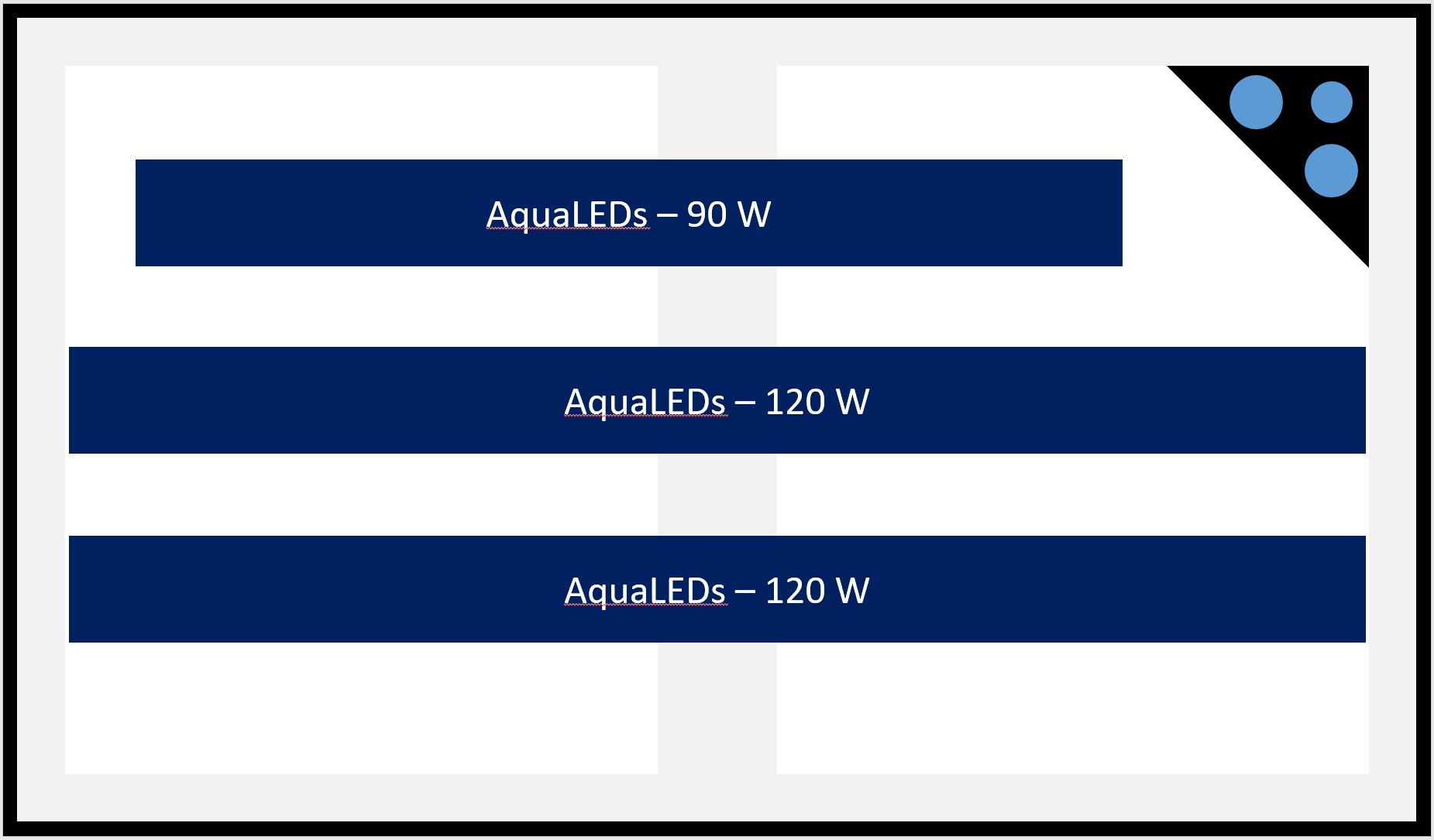 Unsere High-Tech LED-Beleuchtung unterscheidet sich von denen der Konkurrenz dadurch, dass wir auf einen Lüfter verzichten. Stattdessen wird die aquaBAR durch speziell entwickelte Aluminiumrippen gekühlt, die selbst bei hohen Umgebungstemperaturen von 50 °C eine optimale Wärmeableitung gewährleisten. Ergänzend ist die Lampe durch einen Temperatursensor vor Überhitzung geschützt.