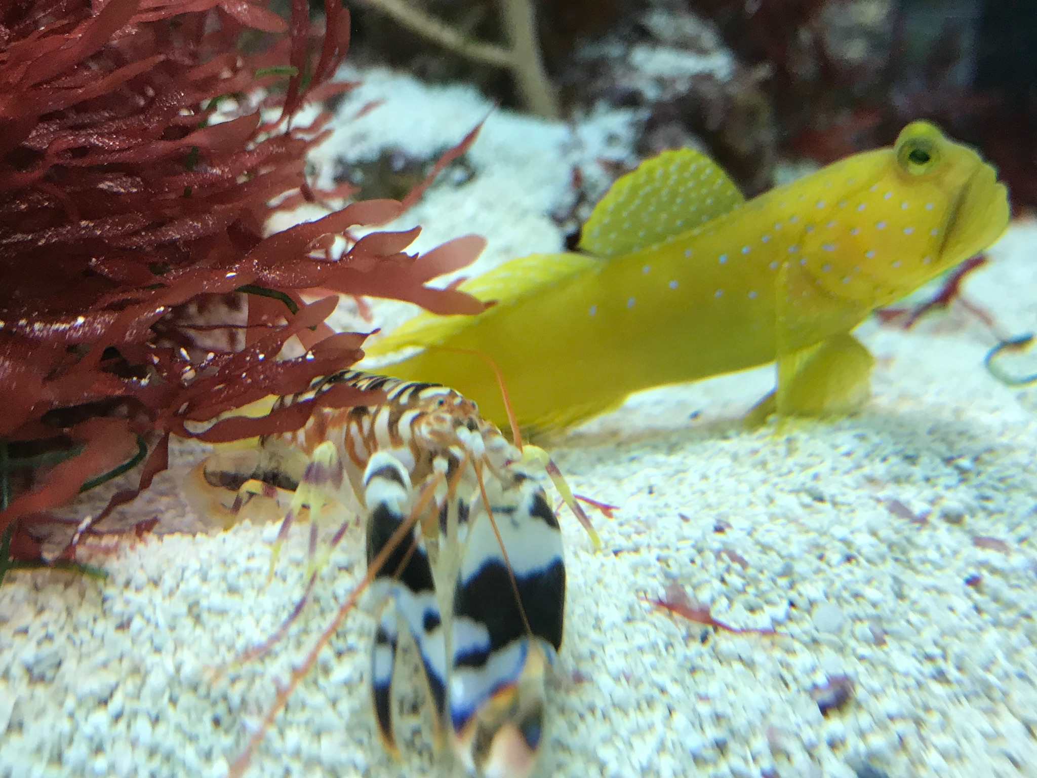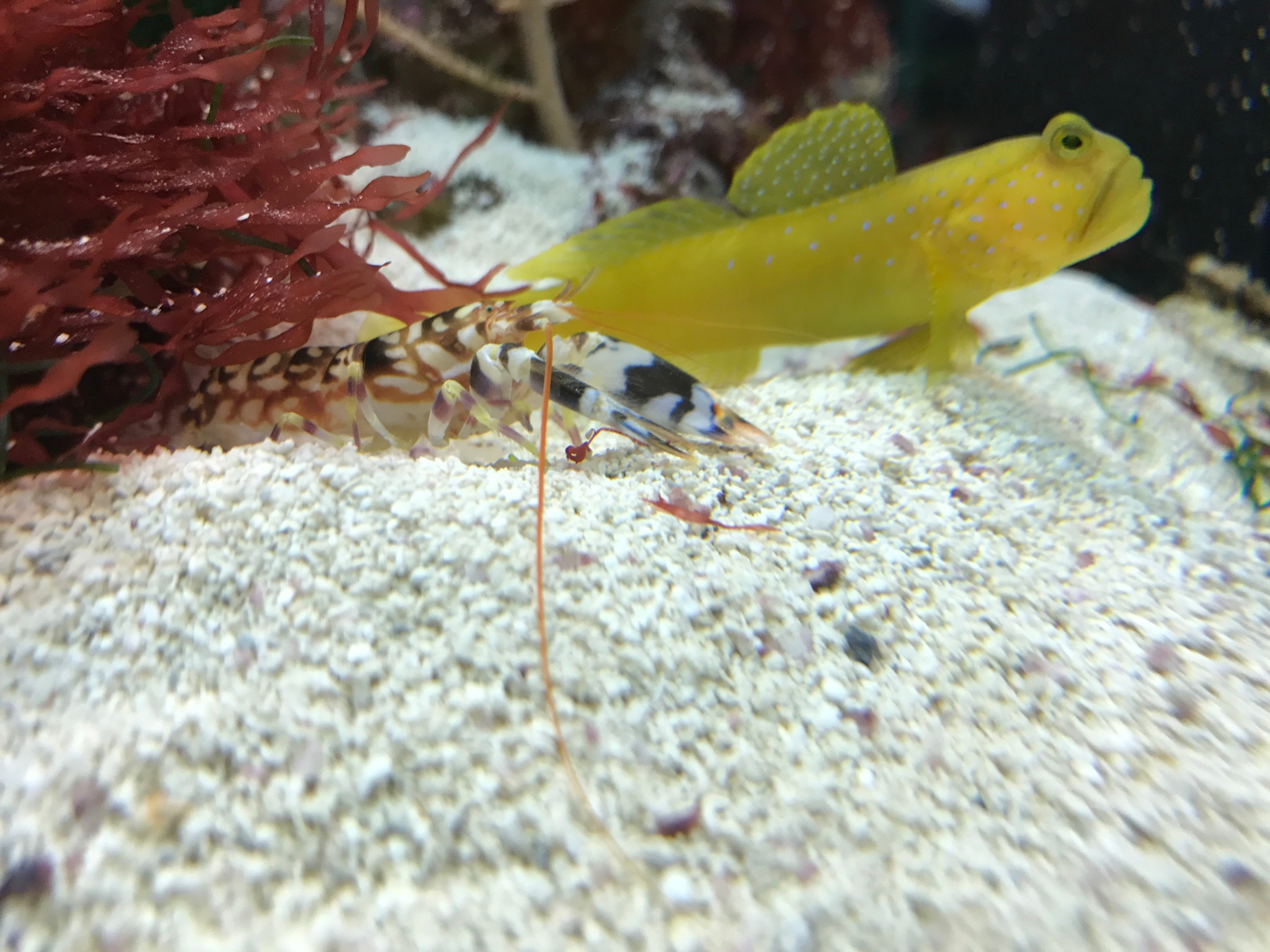 Was für Knallis hast Du denn? Ich hab noch einen bellulus, der ist auch recht mutig. Aber in dem Becken mit dem Deep Sand Bed hab ich noch einen, ich weiß gar nicht mehr, randalli glaube ich, den hab ich schon ewig nicht mehr gesehen. Insbesondere seit die Grundel nicht mehr dabei ist. Den höre ich auch nur und sehe manchmal die Sandwolken, die er aus seiner Höhle rausfegt. Dann weiß ich zumindest, dass er noch da ist.... Sollte er länger leben als der Salarias ramosus, der das Becken beherrscht, dann bekommt er auch wieder eine Grundel. Aber momentan geht's eben nicht.