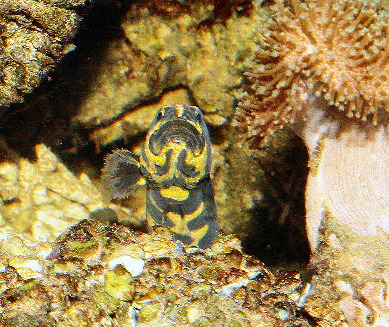 mein Aalgrundelweibchen hat seit einigen Tagen einen verdächtig dicken Bauch. Ich denke mal, daß da bald was passieren wird. Jedenfalls bin ich guter Hoffnung. Die Fische zählen ja zu den wenigen, die nicht nur das Gelege, sondern auch die Brut einige Zeit betreuen. Leider lassen sie keine Blicke in ihre Höhle zu. Das Weibchen ist jetzt ~30 cm, das Männchen einige cm kleiner. Ich berichte mal weiter, wenn's was zu berichten gibt.