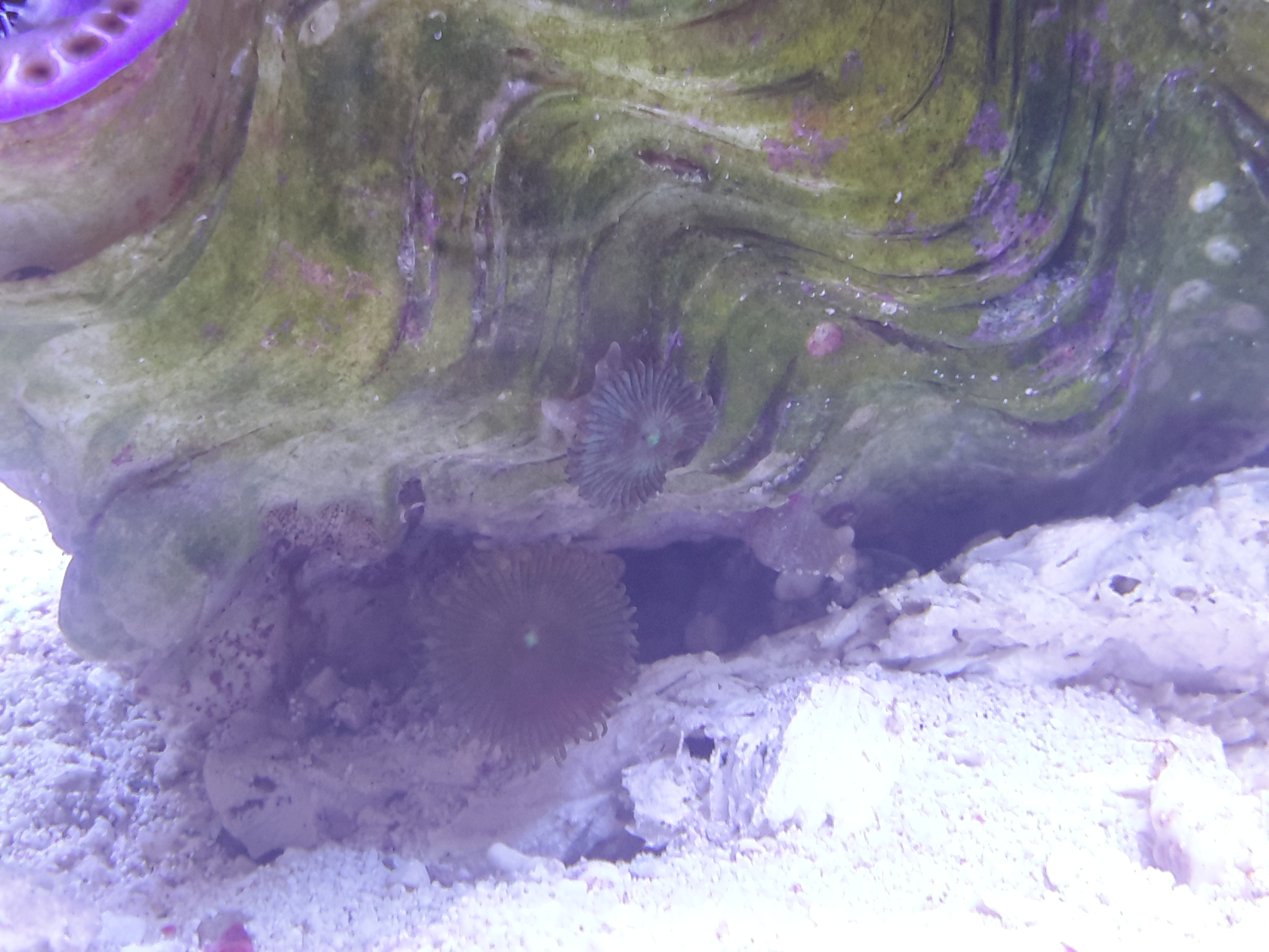 Am unteren Schalenende haben sich 2 Krustenanemonen angesiedelt die möchte ich dort ungern lassen nicht das dieses schöne Tier schaden nimmt.