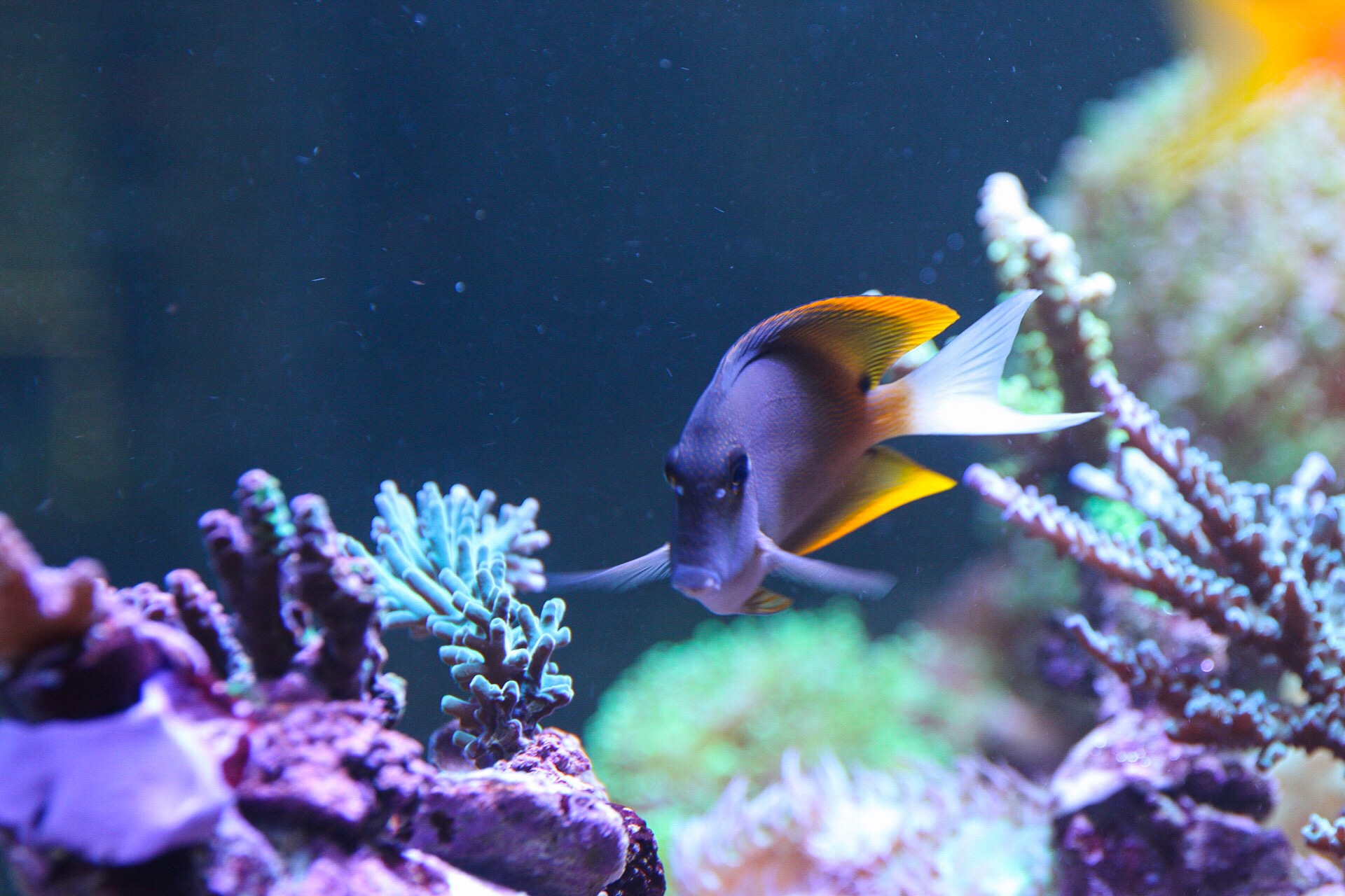 Um nicht ständig Zusätze ins Becken zu kippen habe ich mich dann entschieden noch weitere Fische nach zu setzten, komischer Weise sind die Werte dann aber immer weiter hoch gegangen, nachgesetzt habe ich ein Pärchen Flammenzwergkaiser und einen Fahnenbarsch (2 von den bestellen drei haben den Transport nicht verkraftet und sind nach 2 Tagen eingegangen).