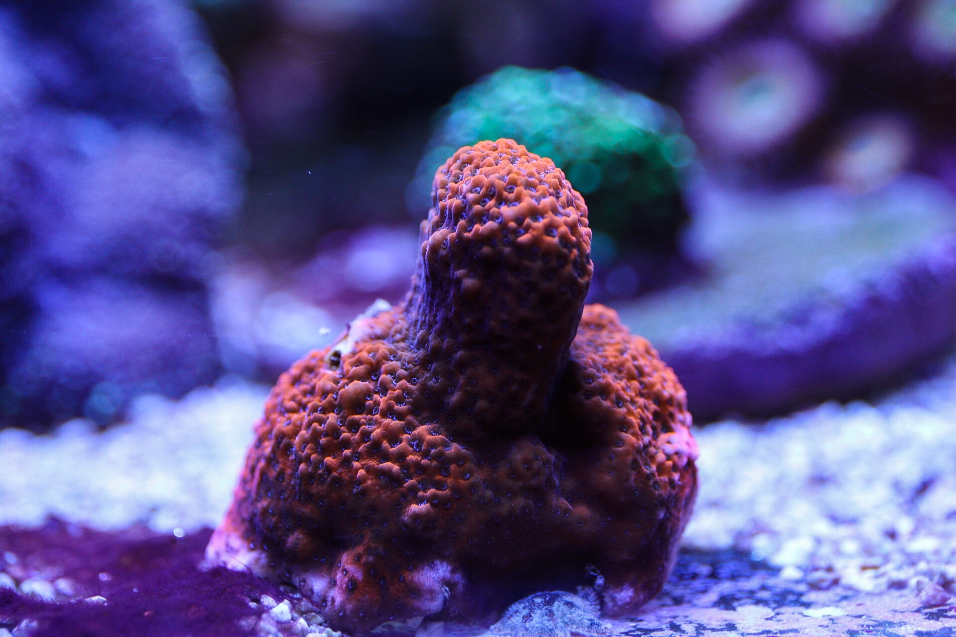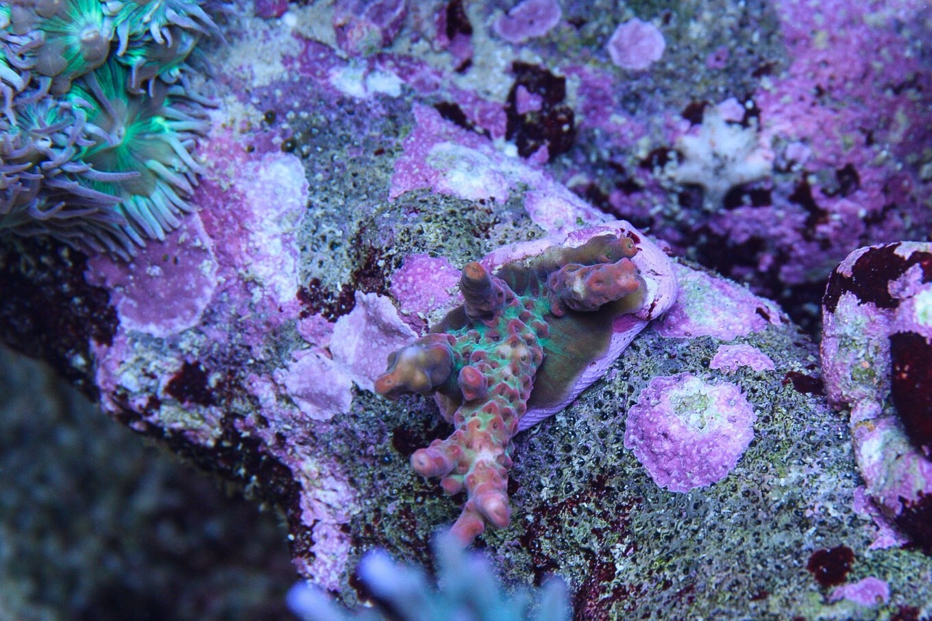 Aber für mein langfristiges Ziel (Mehr und seltenere Acroporen) ist das halt eher tödlich, deshalb habe ich noch ein Grabenden Seestern zu den zwei Seewalzen gesetzt um den Boden sauber zu bekommen, da ich vermute das es sich um Depots handelt die frei gelegt wurden..