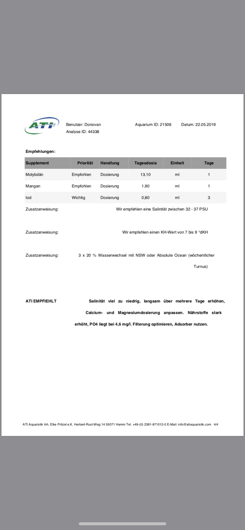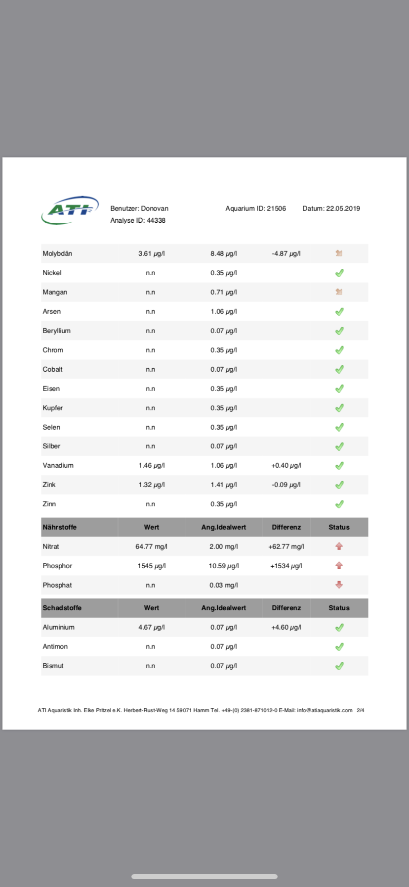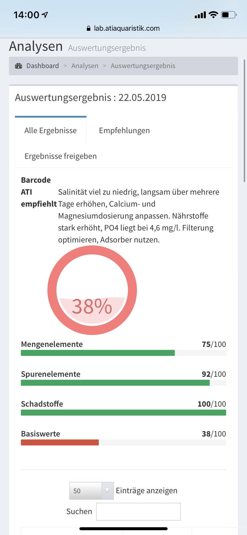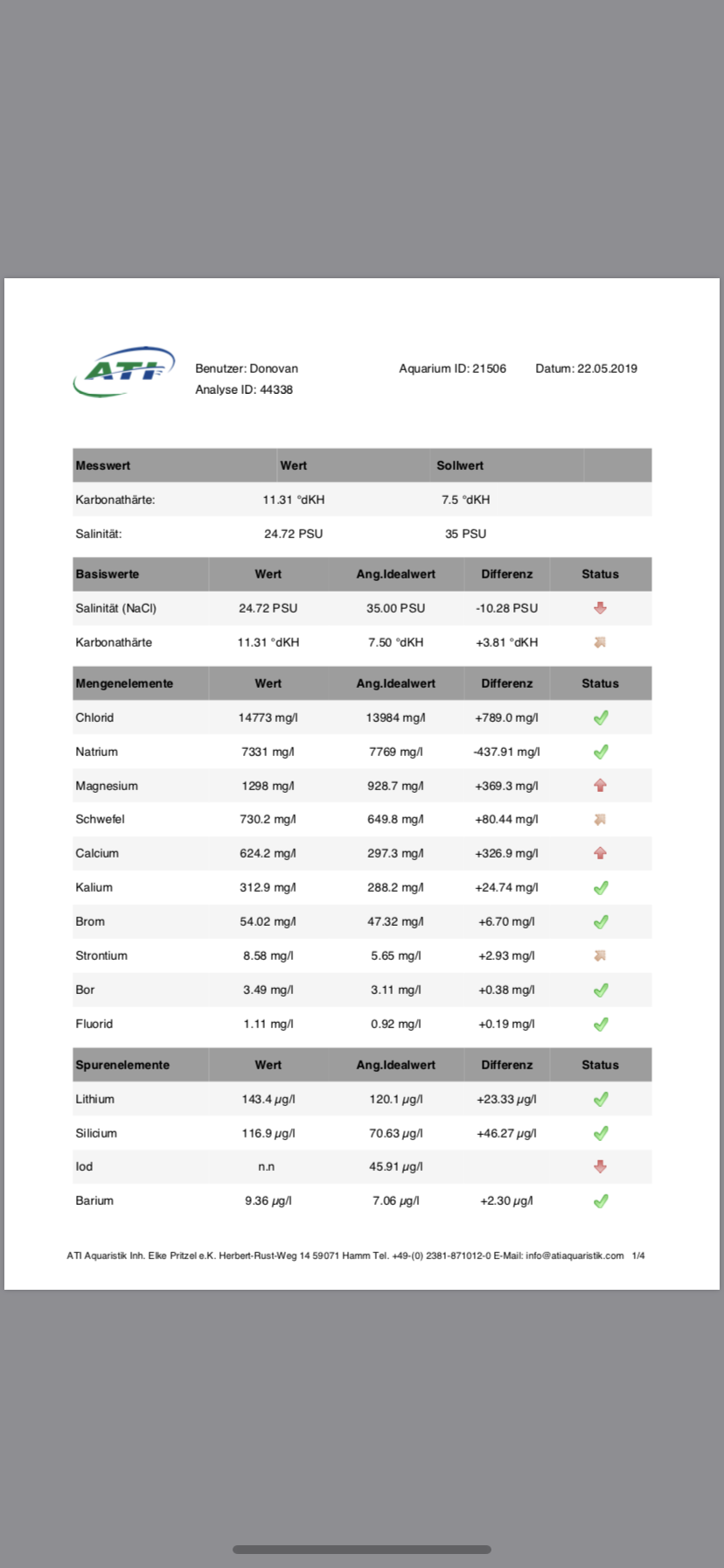Calcium und Magnesium muss ich anpassen und meine Dichte ist wohl zu niedrig muss ich die Tage langsam anpassen.