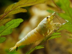 Diese beiden Arten waren aber nicht geeignet, ihre Butze halbwegs algenfrei zu halten, also nahm ich als erstes einen kleinen Antennenwels aus dem Tierheim mit (im Aquarium dort vervielfältigen die sich ohne Ende, deswegen nur einer). Der lutschte zwar alle möglichen Algen, aber nicht alle. Auf der letzten Aquarienbörse habe ich dann noch die ultimative Waffe gegen Algen mitgenommen: Amanogarnelen! Die piddeln echt alles weg. Sind sogar Nachzuchten made in Ostfriesland gewesen. Und ich werde sie auch züchten. Ist etwas tricky, weil sie ja Larvenstadien haben, aber das klappt meistens.