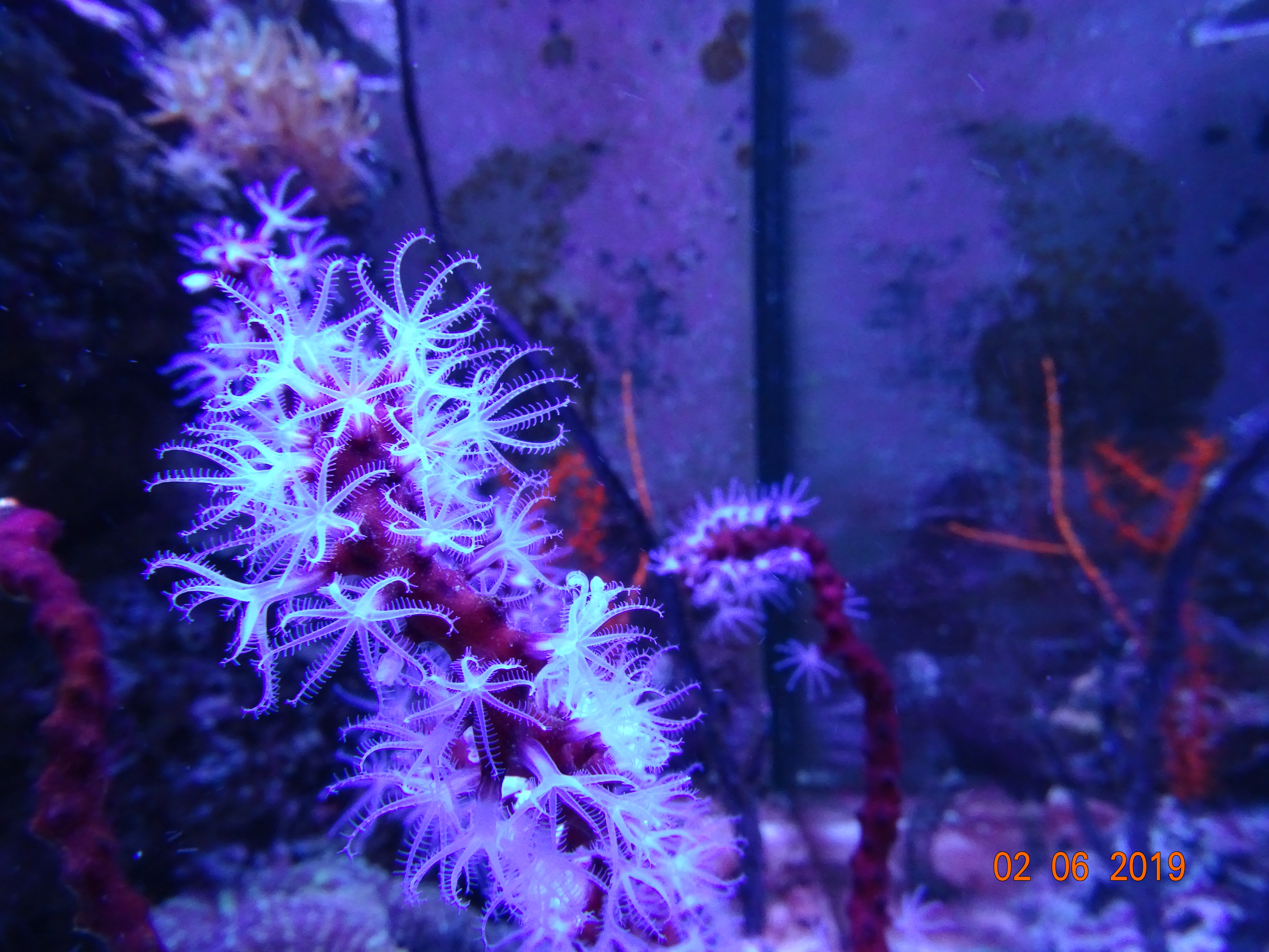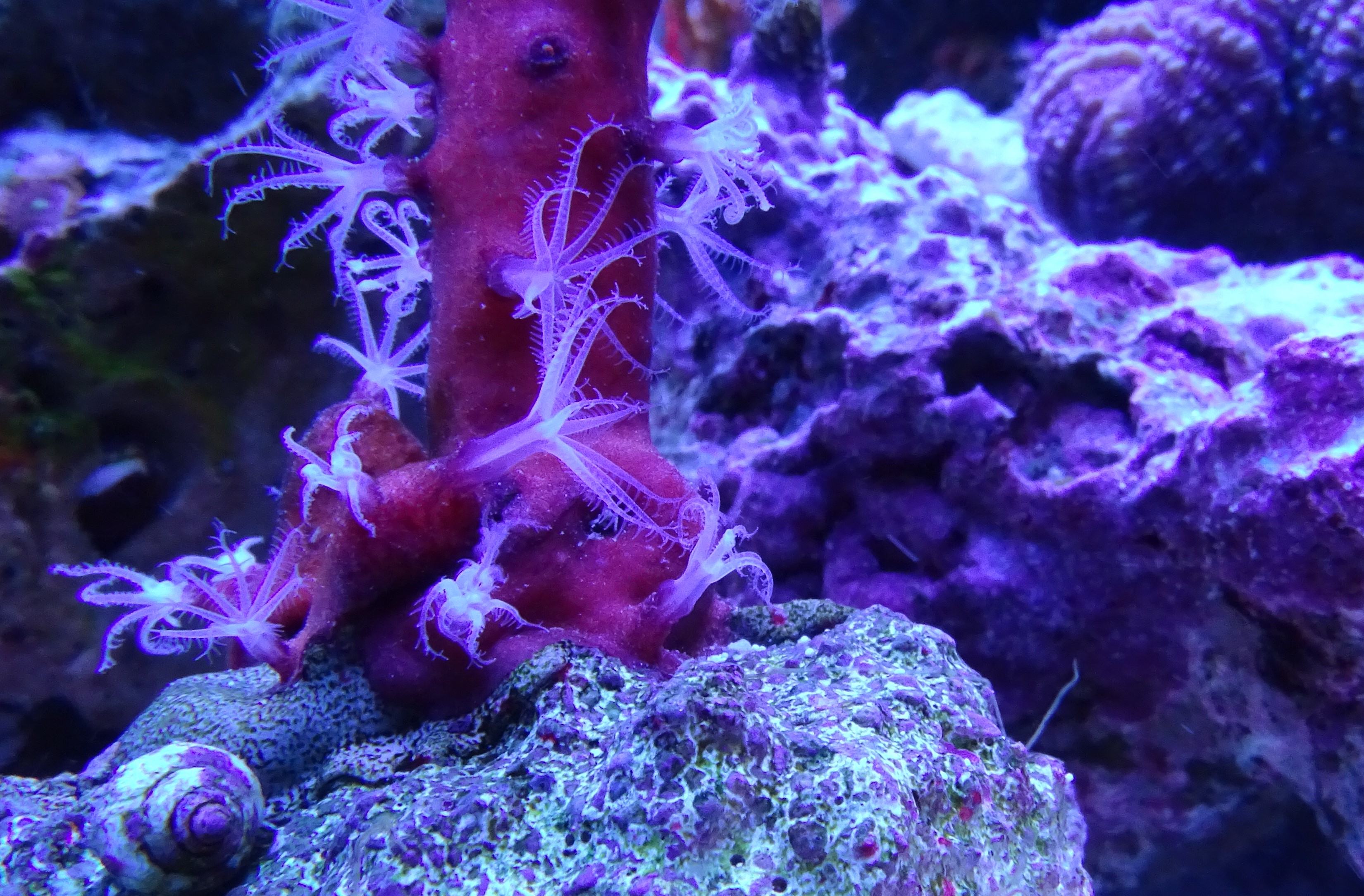 Daher füttere ich jeweils mit einer Pipette zunächst die Gorgonien mit größeren Polypen dann die Gorgonien mit kleineren Polypen. So bekommt jede Gorgonie die richtige für sie passenden Größe.