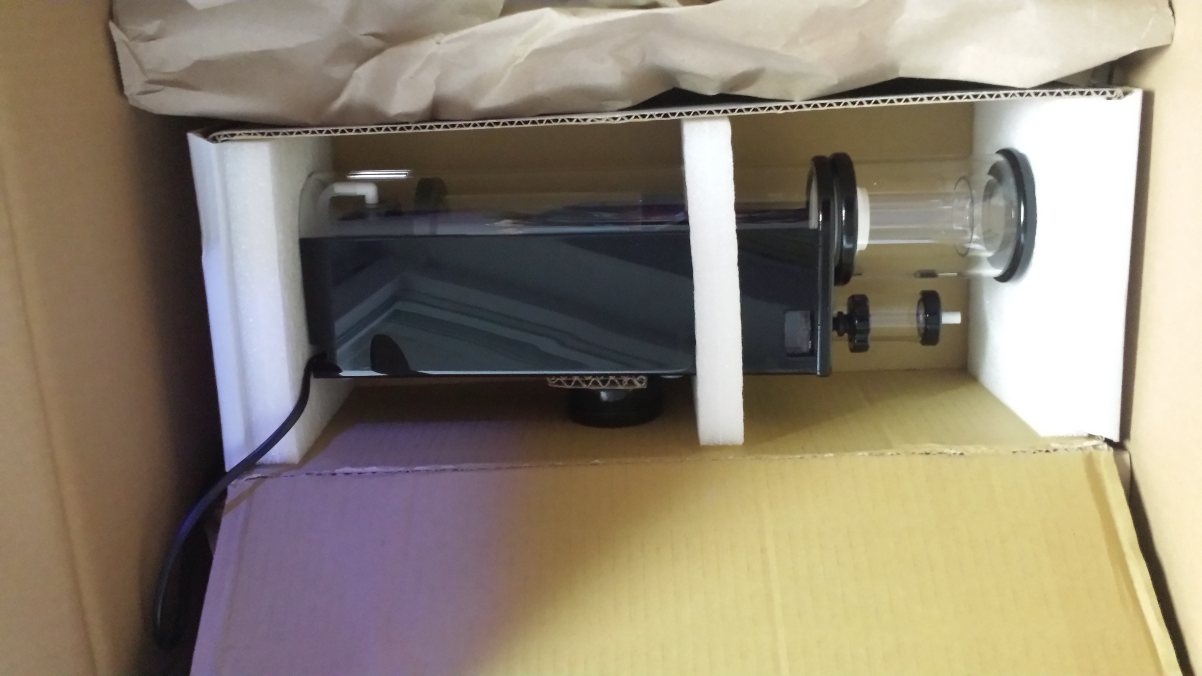 Dann hieß es erstmal eine Menge Verpackungsmaterial an die Seite räumen. Zum Vorschein kam am Ende oben geschriebener Innenabschäumer der neusten Serie, welche noch nicht auf dem Markt sind. Berichtet hatte ja schon Robert in diesem Video von der Messe Sindelfingen.