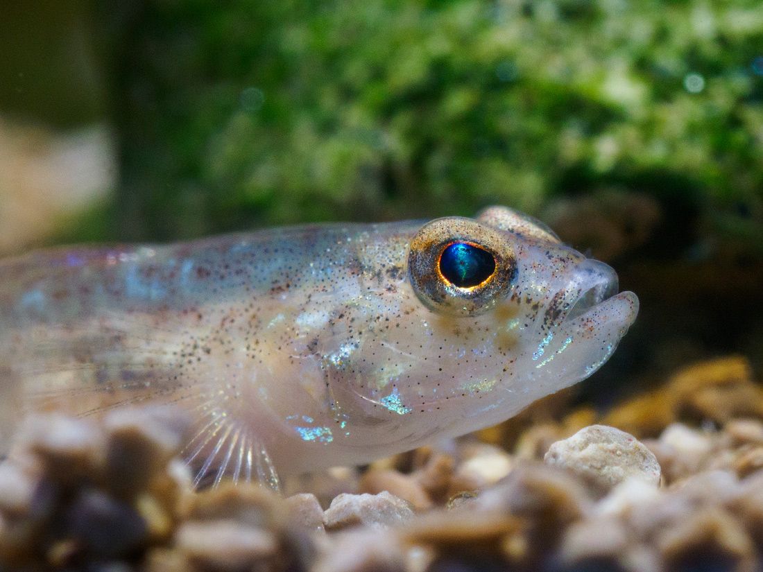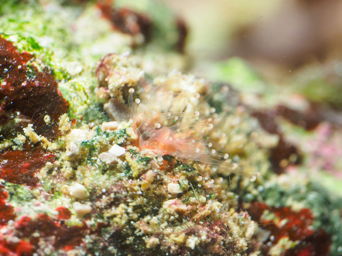 Wächter über die Waminoa. Die kleine Schlammgrundel pickt recht begeistert kleine Waminoa von den Scheibenanemonen, die großen sauge ich mit der Pipette ab.