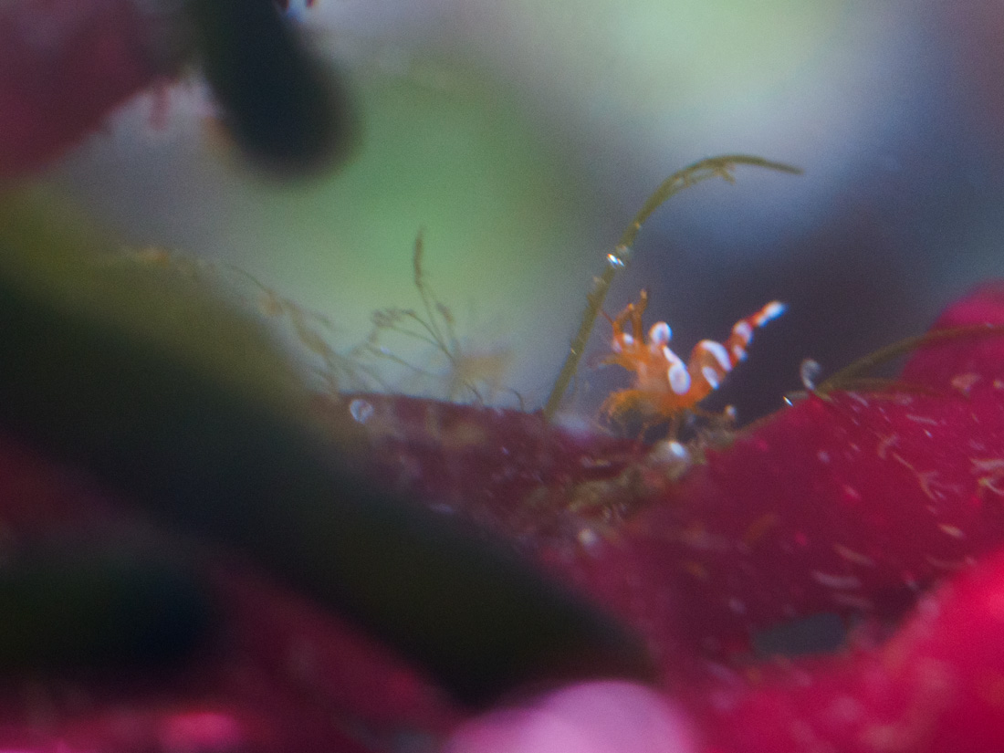 Der Porzellankrebs hat sich was ganz neues ausgesucht, den Busch Rotalge
