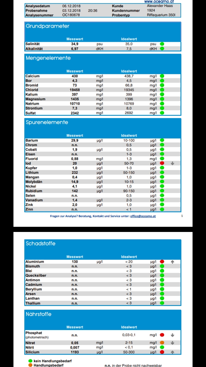 KH + Ca + Spurenelemente Versorgung mit Oceamo Produkten