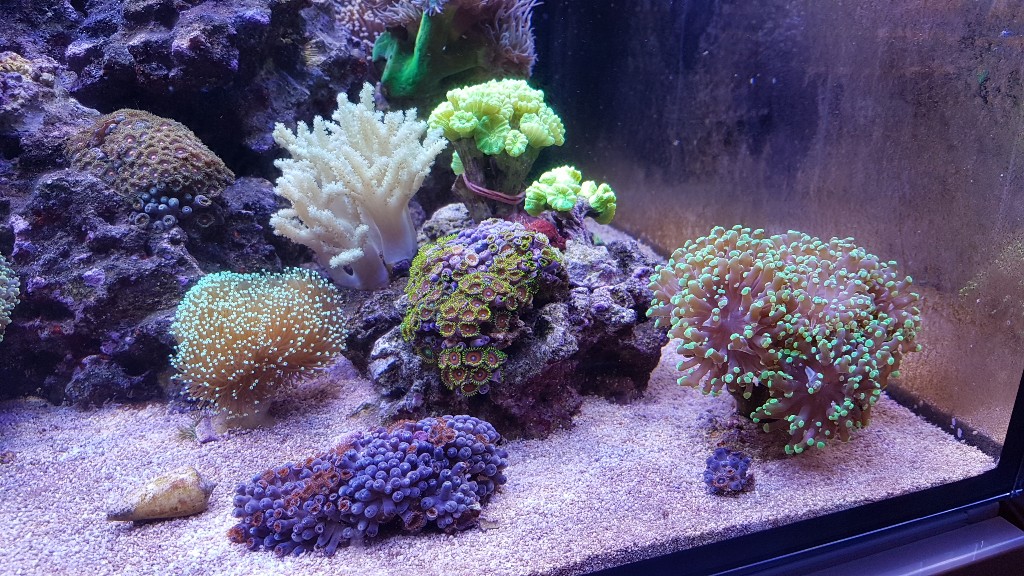 Nun von zu Hause die Schnecken und Einsiedler und 2 Weichkorallen aus meinem Blenny geholt.