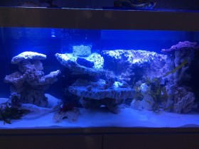 Am WE habe ich Das Riff gebaut, Live Sand und Korallensand eingefüllt, Wasser und Salz drauf,fertig.