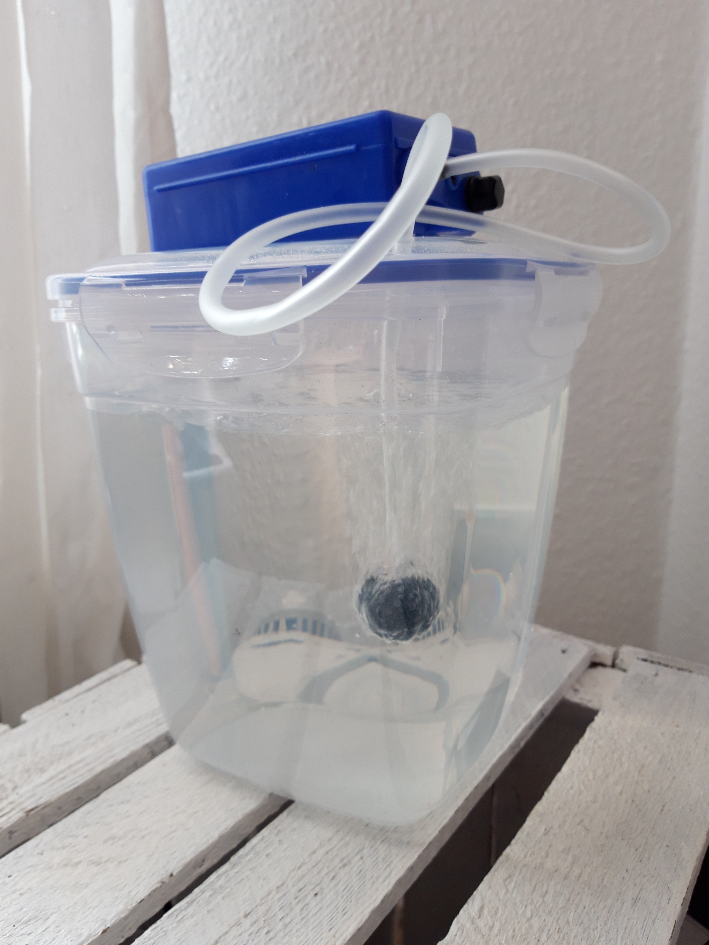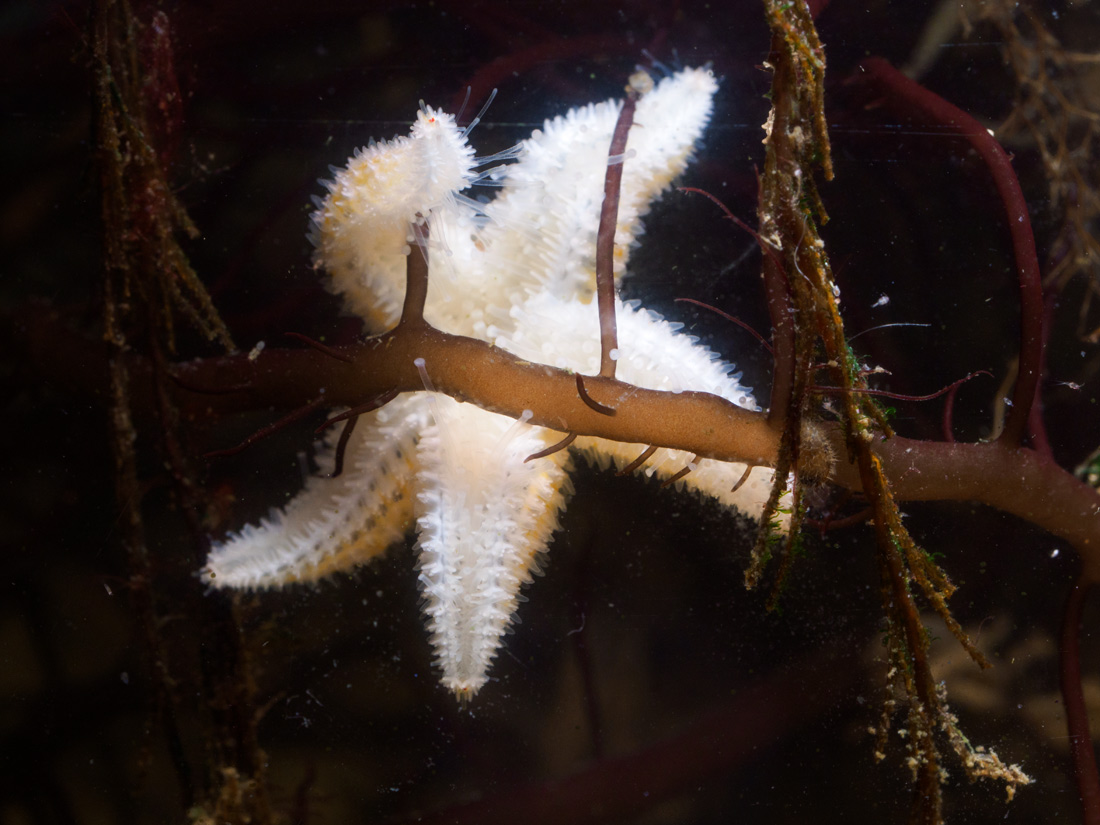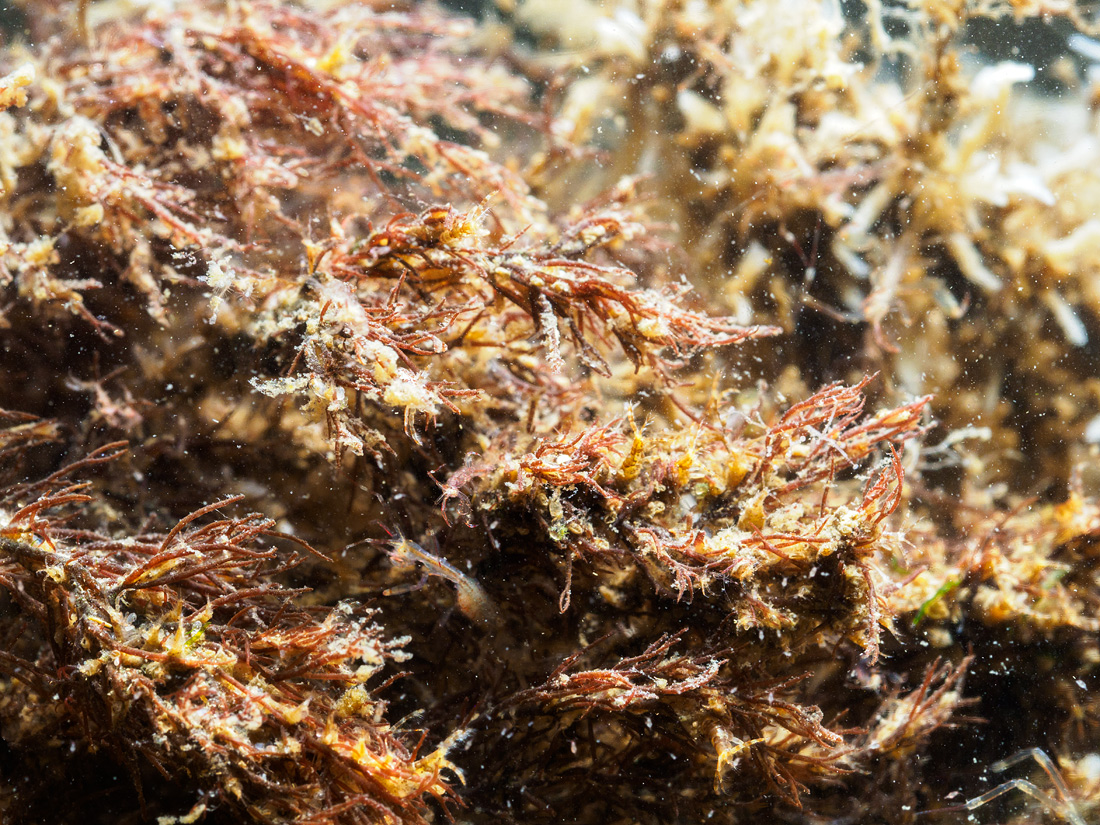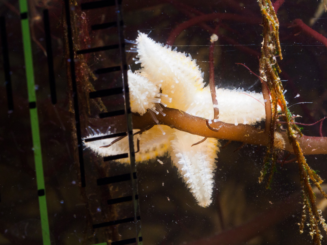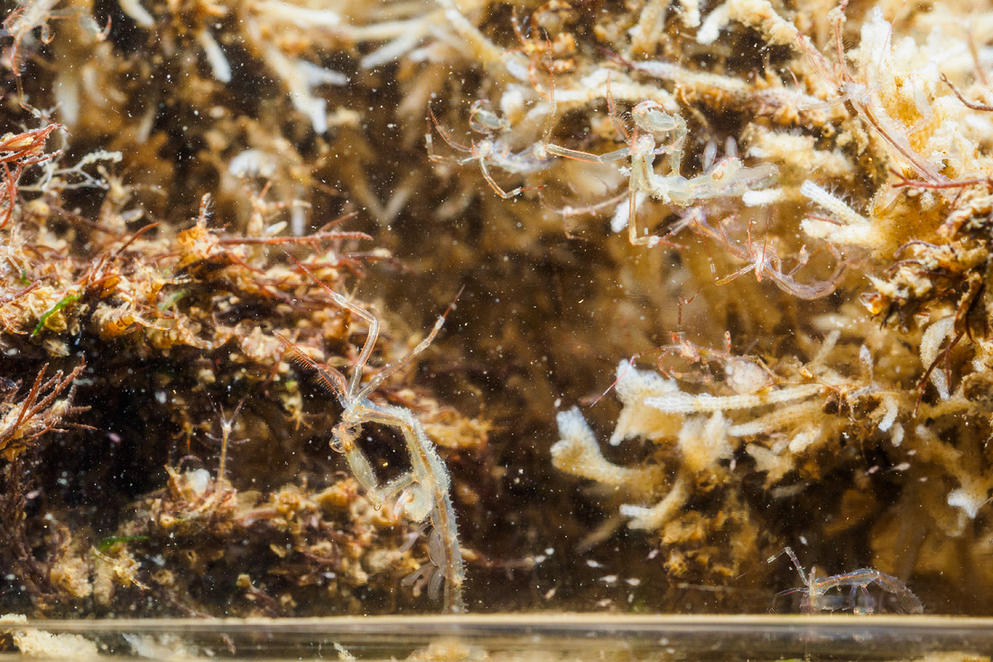 ). Darin wohnen jedemenge Gespenstkrebschen und Sichelflohkrebschen. Eine japanische Keulenseescheide (Styela clava) ist auch mit dabei (das gelblich-orange-farbene Dings rechts in Richtung Seitenscheibe).