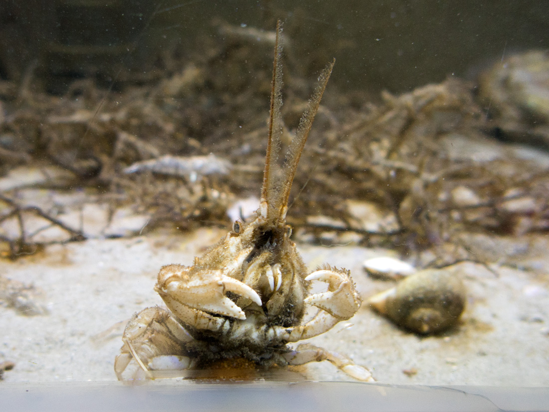 Suchfoto mit Krebschen. Tipp eher unten links.