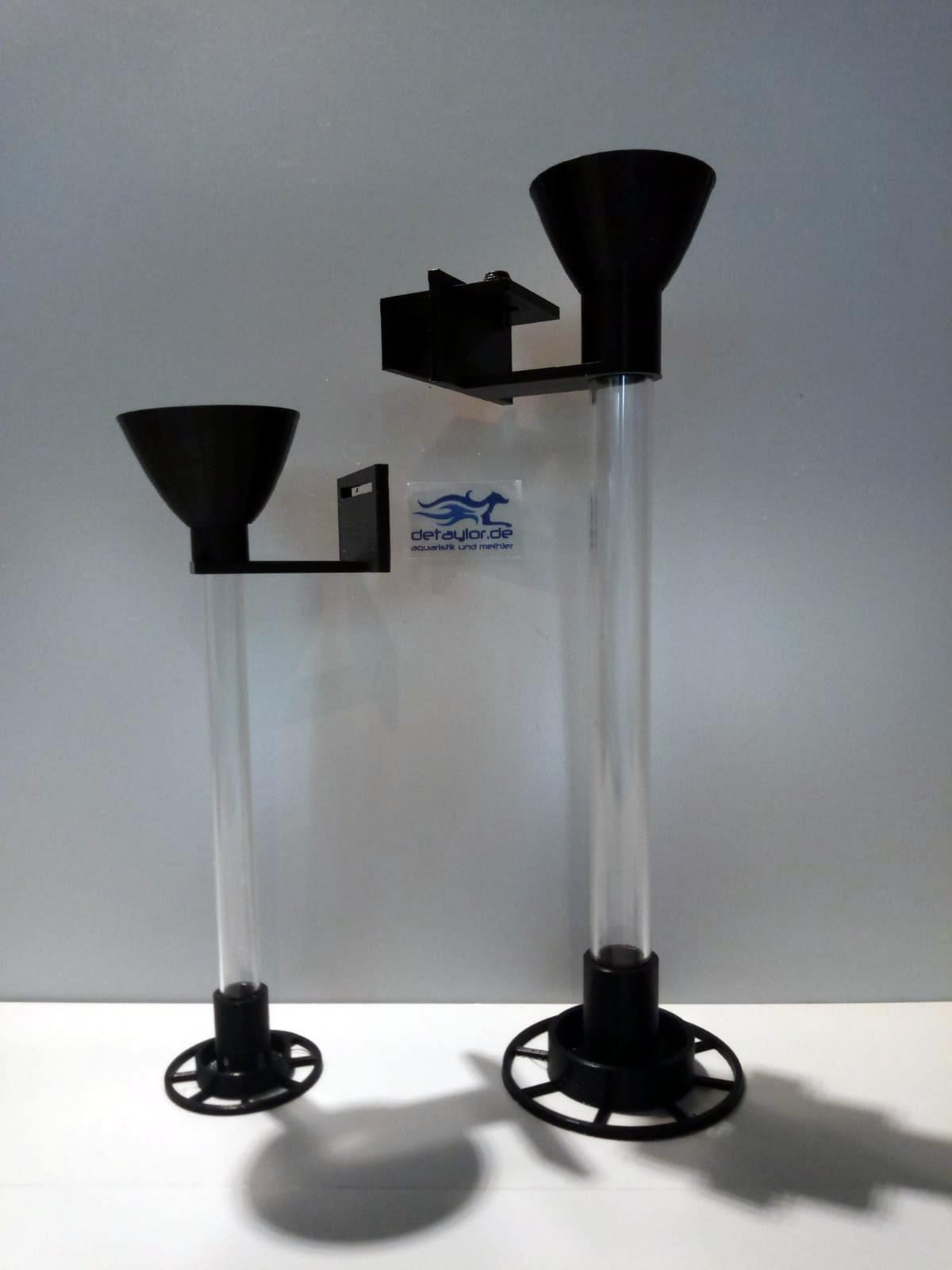 Seepferdchen sind sehr Fütterungsintensiv und damit nicht zuviel im Becken umherwirbelt, haben wir eine auf die Glasstärke einstellbare Seepferdchenfutterstation kreiert. So können die Seepferdchen genüßlich aus dem Futterring futtern, denn Sie haben einen Haltering ringsherum. Im obereren Bereich ist ein Trichter zu besseren Futtereinleitung angebracht. Wie bei fast allen unsere innovativen Produkten...sind alle Teile nur gesteckt und leicht zu reinigen, bei Bedarf.