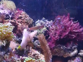 Ich habe es bisher nicht bereut. Mein Liebling, der Tangfeilenfisch und die beiden Wurdmani haben die Glasrosen schon sichtlich dezimiert.
