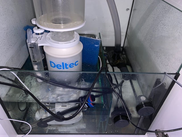 Hier wird Timer-gesteuert eine "Tunze Refugium Light" betrieben, die konträr zum Lichtzyklus im Becken läuft.