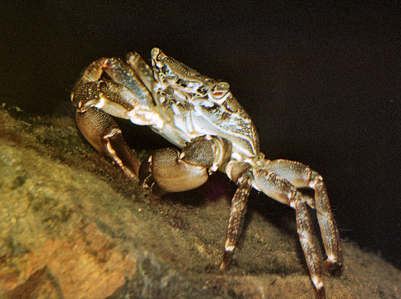 Der Felsküsteneinsiedler ist wesentlich robuster und latscht im Aquarium über alles hinweg was im Wege steht.