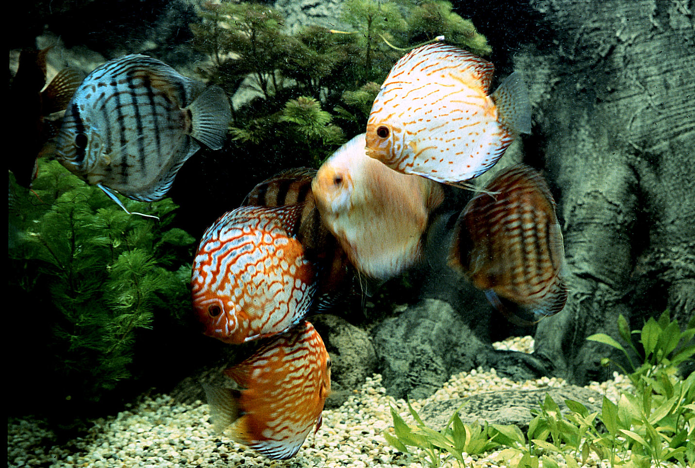 Vorerst kommen sie in ein 250 lt. Becken. Im Becken gibt es viele Verstecksmöglichkeiten. Im Amazonal leben sie ja oft unter Holzwurzeln und Hölzern.