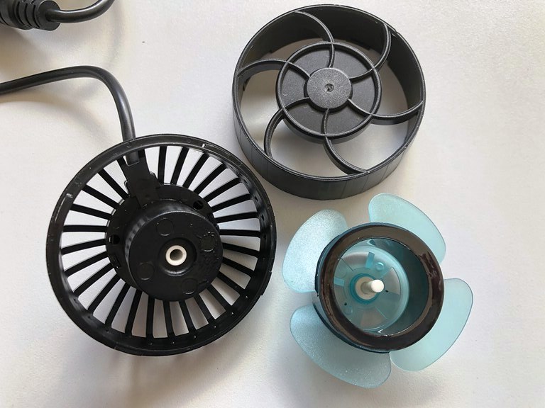 Die Pumpe selber besteht aus nur drei Teilen: Motor, Flügelrad und Auslassgitter.