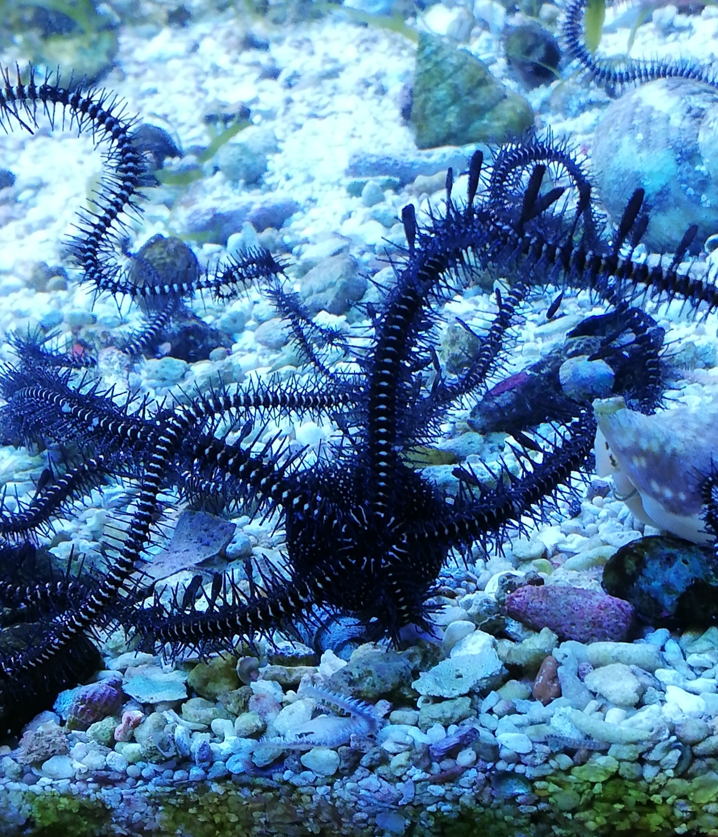 . Ich dachte, ich breche ab, plus noch 2 räuberische Krabben. Die komplette Großfamilie ging nach Kiel, da wollte sie jemand haben. Den Stein habe ich anschließend mit Riffzement wieder zusammengebaut (vorher hatte er leider eine Begegnung mit einem Hammer, da kamen die ganzen Untermieter zum Vorschein).