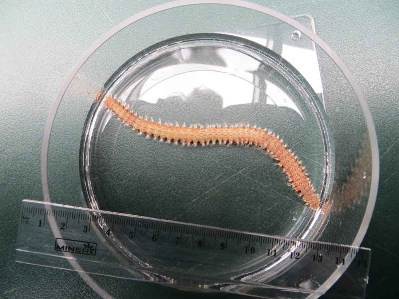 Hier ein Bild eines kleinen Exemplares. Diese Wurmart hat in der gleichen Zeit aber einen angeschlagenen Kaiserfisch getötet.