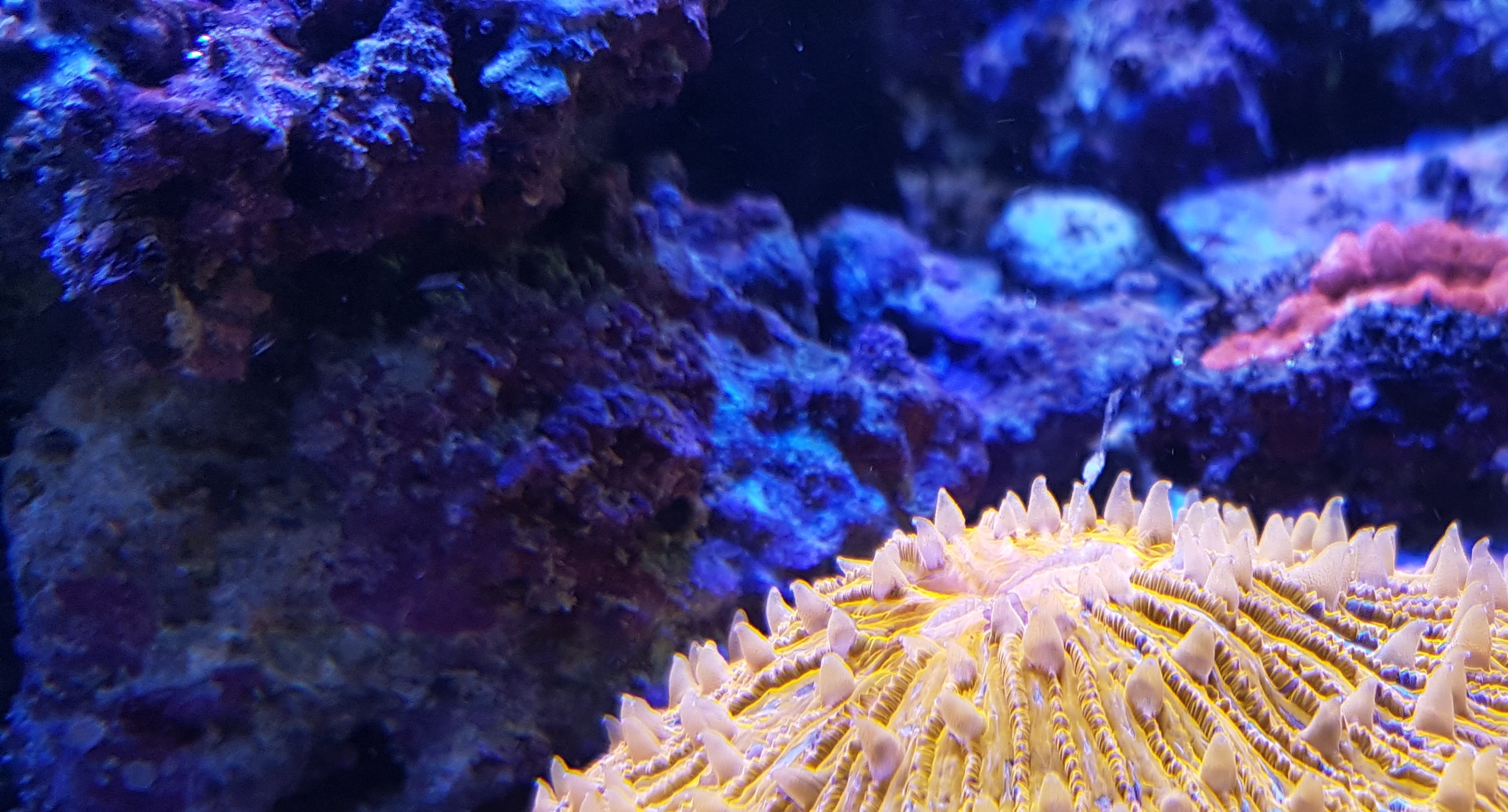 Die Fungia zurzeit. Der rote Mund ist schon lange nicht mehr zu sehen, er scheint nur eine Eigenschaft der Jungkoralle zu sein.