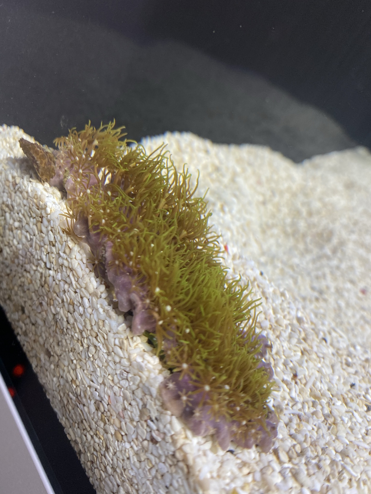 Sind das Pachyclavularia (entschuldigt die schlechte Aufnahme die steht hinten an die Wand gelehnt und soll die Scheibe hochwandern können)?
