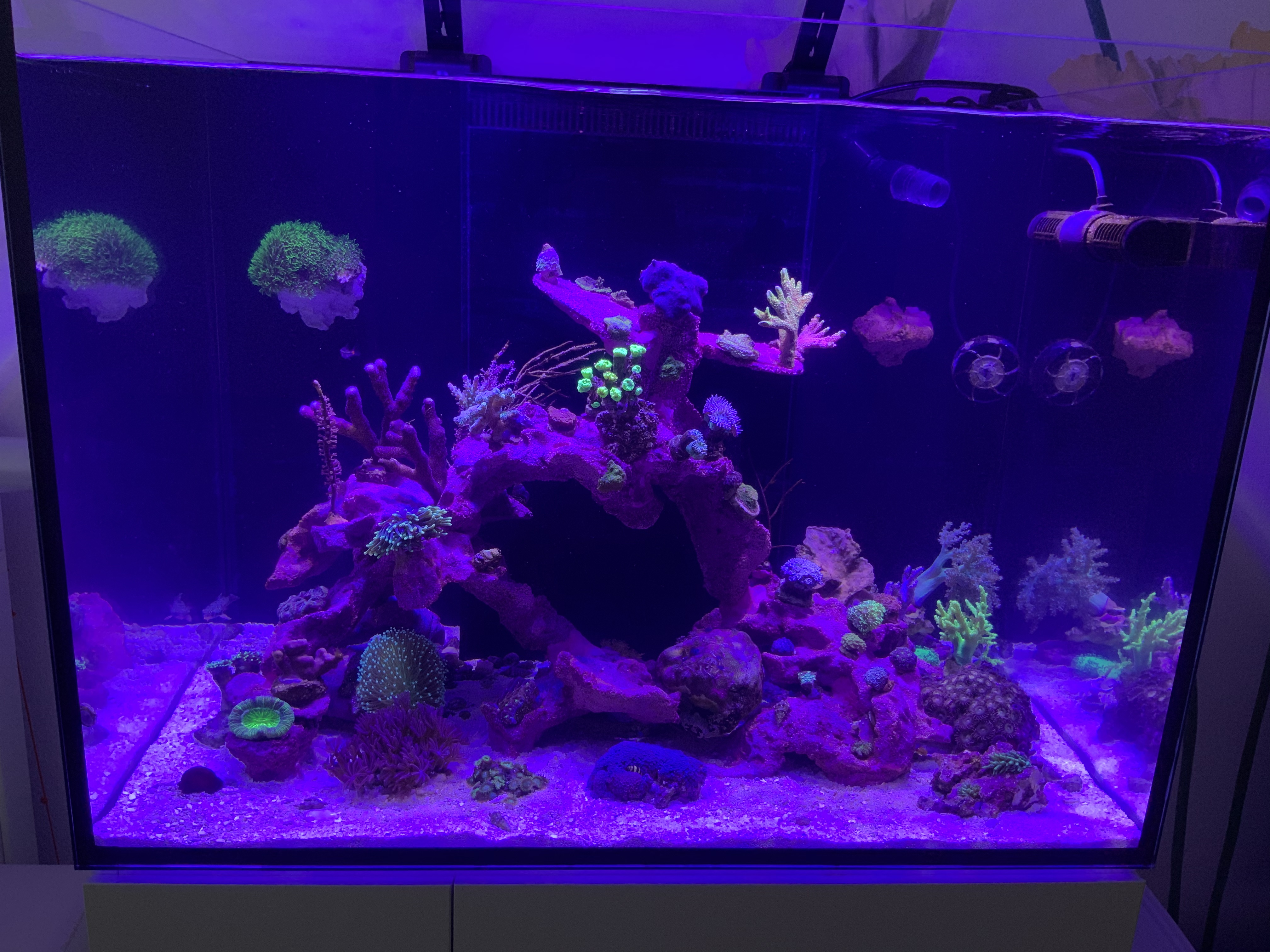 so sieht es aktuell aus. Leider sind einige Korallen immer noch vom Umzug beleidigt. Hoffe die erholen sich wieder.