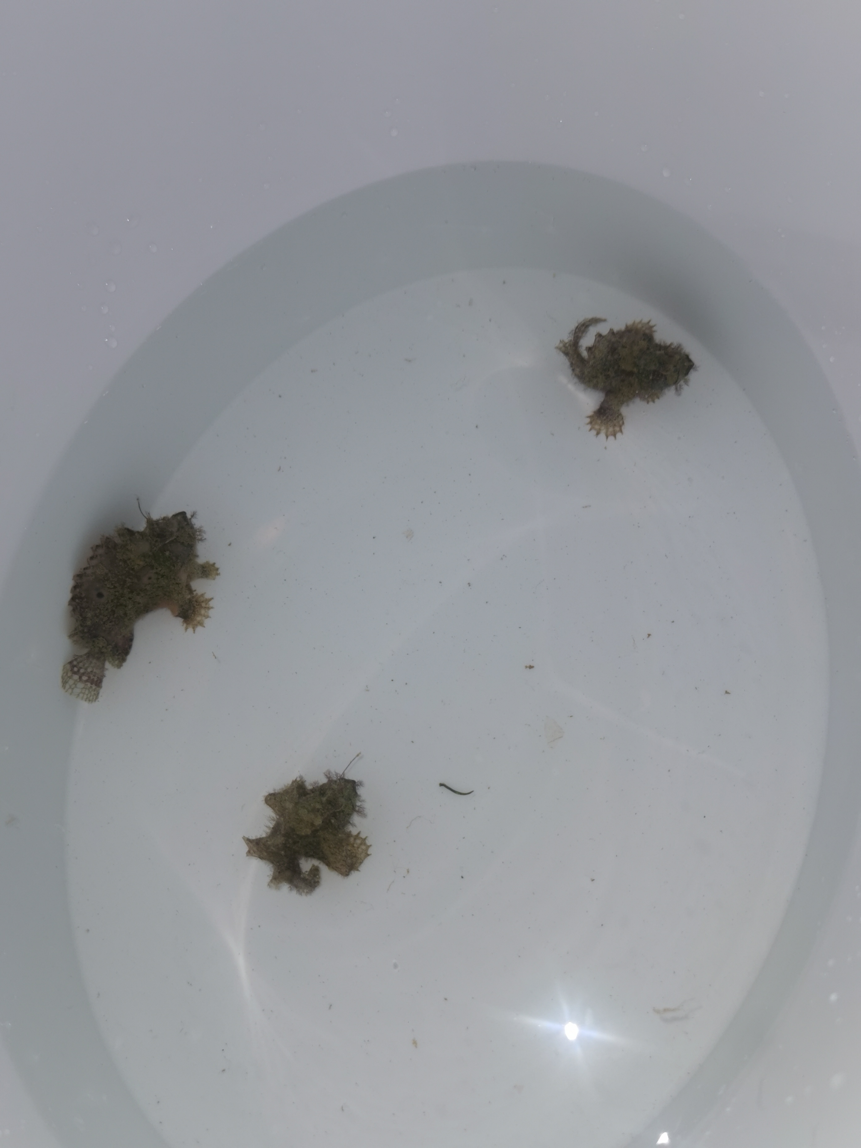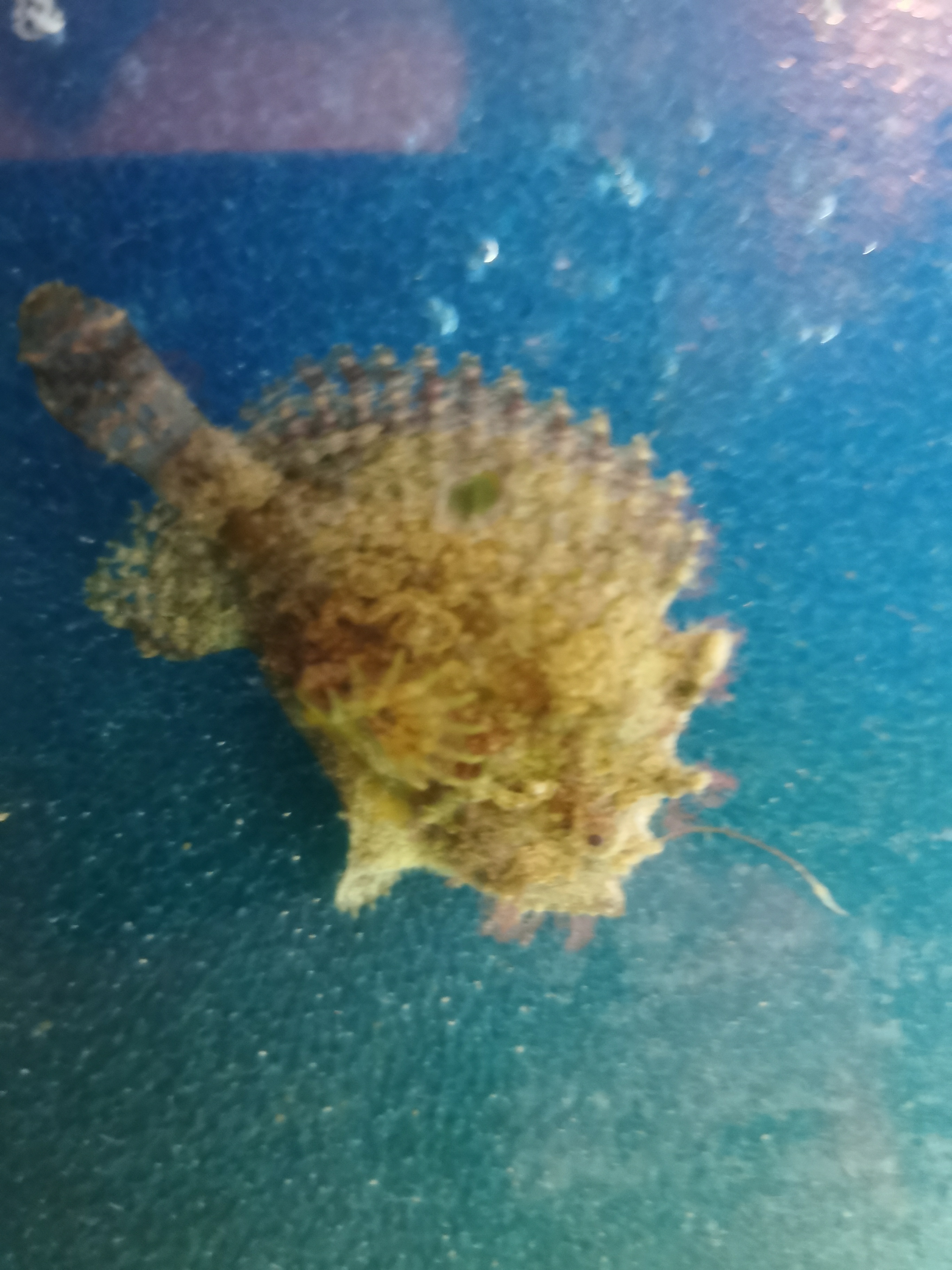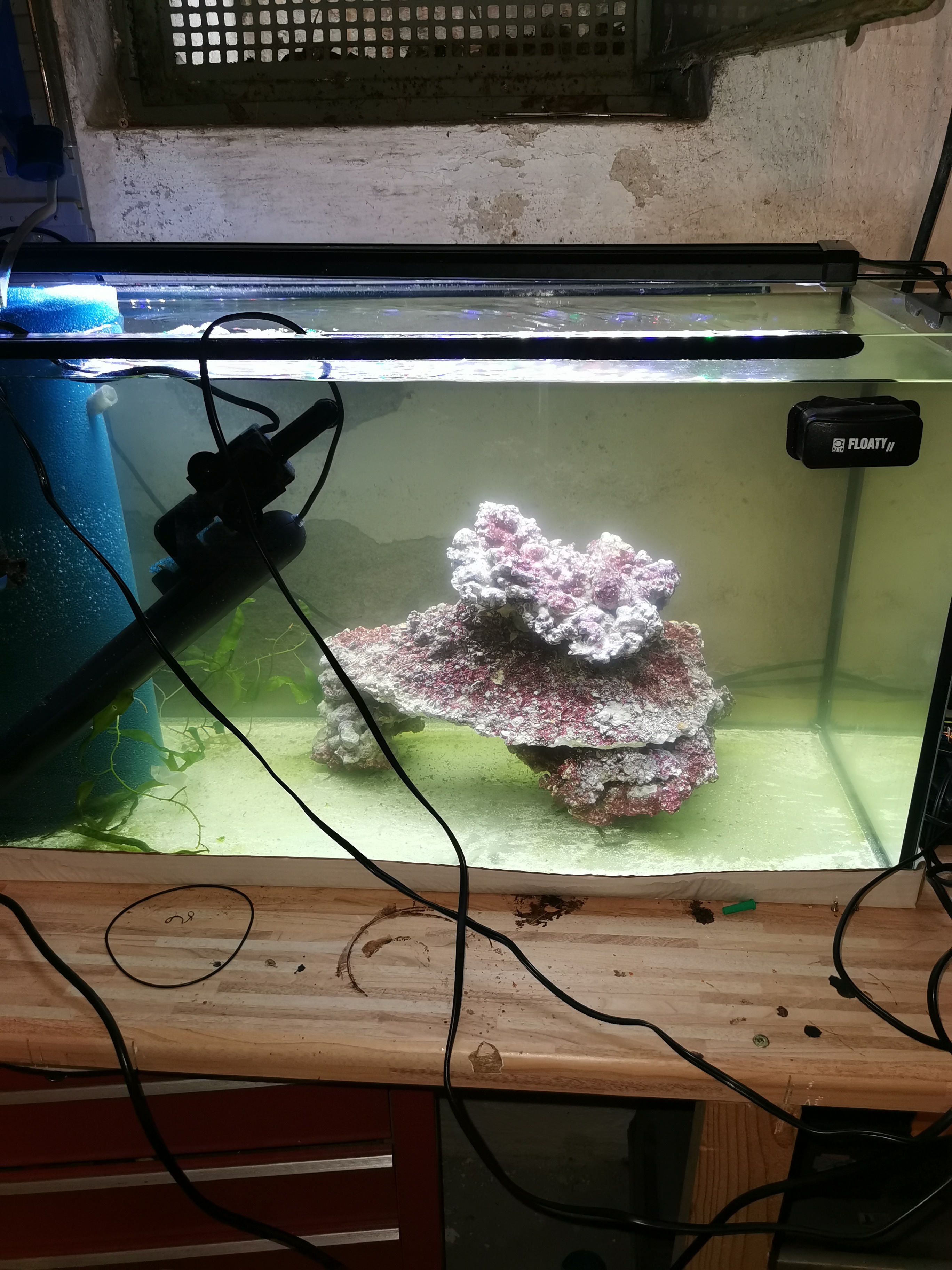 heute war also der große Tag: Ich habe meine drei Marmor-Maul Angler bei Coralaxy in Rostock abgeholt. Es sind zwei kleinere und ein größeres Exemplar. Sollten alle drei gleich alt und gleich gefüttert worden sein, dann könnte es sich um ein Weibchen und zwei Männchen handeln. Aber das ist Zukunftsmusik. Erstmal geht's darum, die Tiere gut einzugewöhnen und regelmäßig ans Futter zu bekommen. Laut Diane von Coralaxy sind alle drei frostfutterfest. Das ist natürlich schon mal Klasse. Das Becken ist noch etwas kahl, mir ging es aber um Übersichtlichkeit und leichte Reinigung. Ich habe zuerst Salinität und Ph-Wert im Becken mit dem Transportwasser verglichen. Obwohl die Werte fast identisch waren habe ich die Fische über eine Stunde angeglichen. Danach wurden sie eingesetzt. Zuerst einmal haben sie sich ein wenig verkrochen, so dass ich Bilder zunächst schuldig bleiben muss, bis auf zwei. In den nächsten Tagen kann ich hoffentlich ein paar gute Bilder nachlegen. Ich bin schon sehr gespannt wie sie sich in den nächsten Tagen machen.