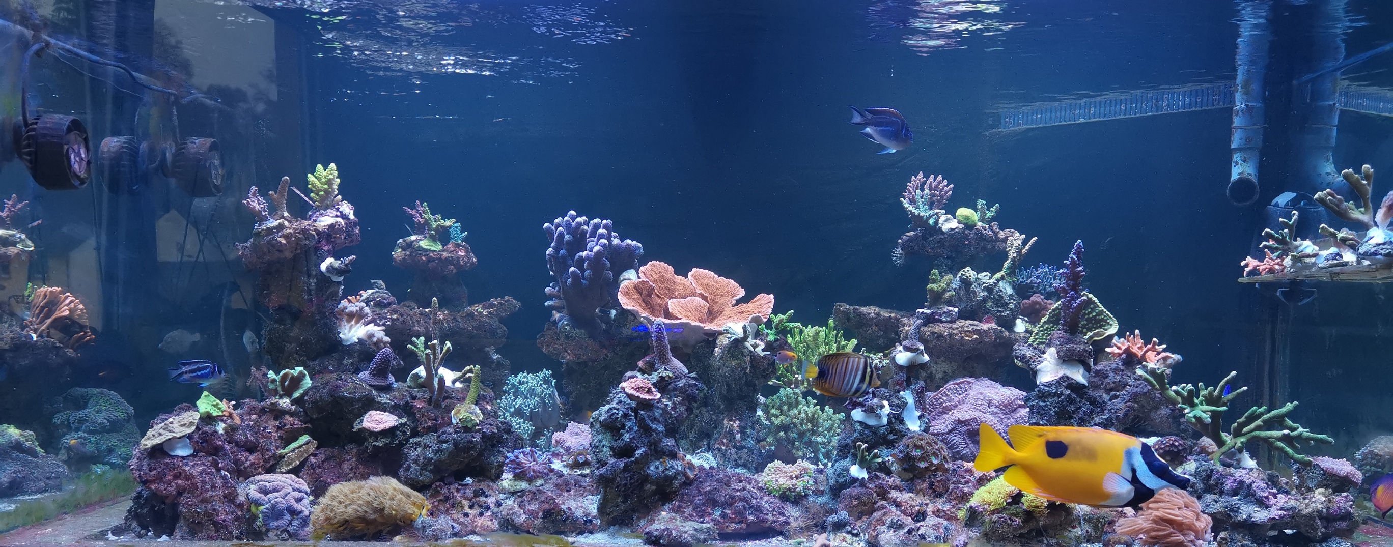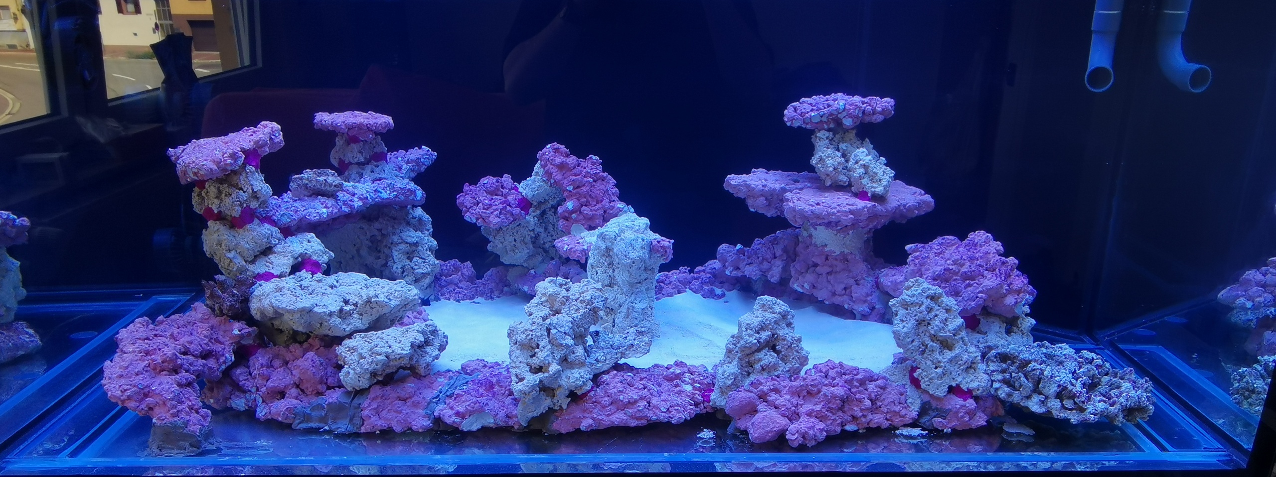 mein aktuelles becken: 150x100x60; beleuchtet mit 4x ati straton. gestartet am 4.7.21. steht also noch nicht so lange, hat aber dafür schon einiges an problemchen gemacht...