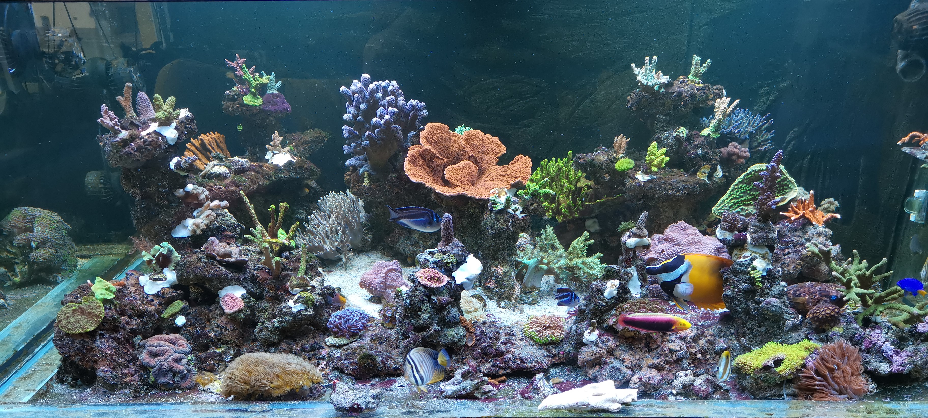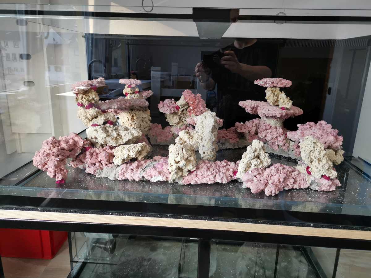 Filterung: Rollermat, Deltec 1000i, Rückförderung Jebao MDC6000; Medienfilter mit Aktivkohle und Po4-Adsorber; Zeolithfilter
