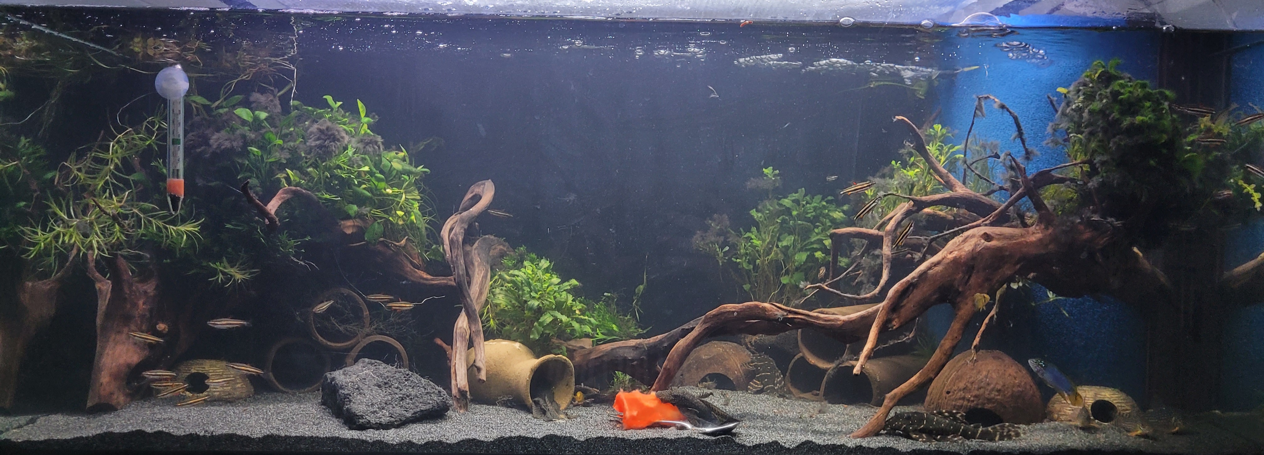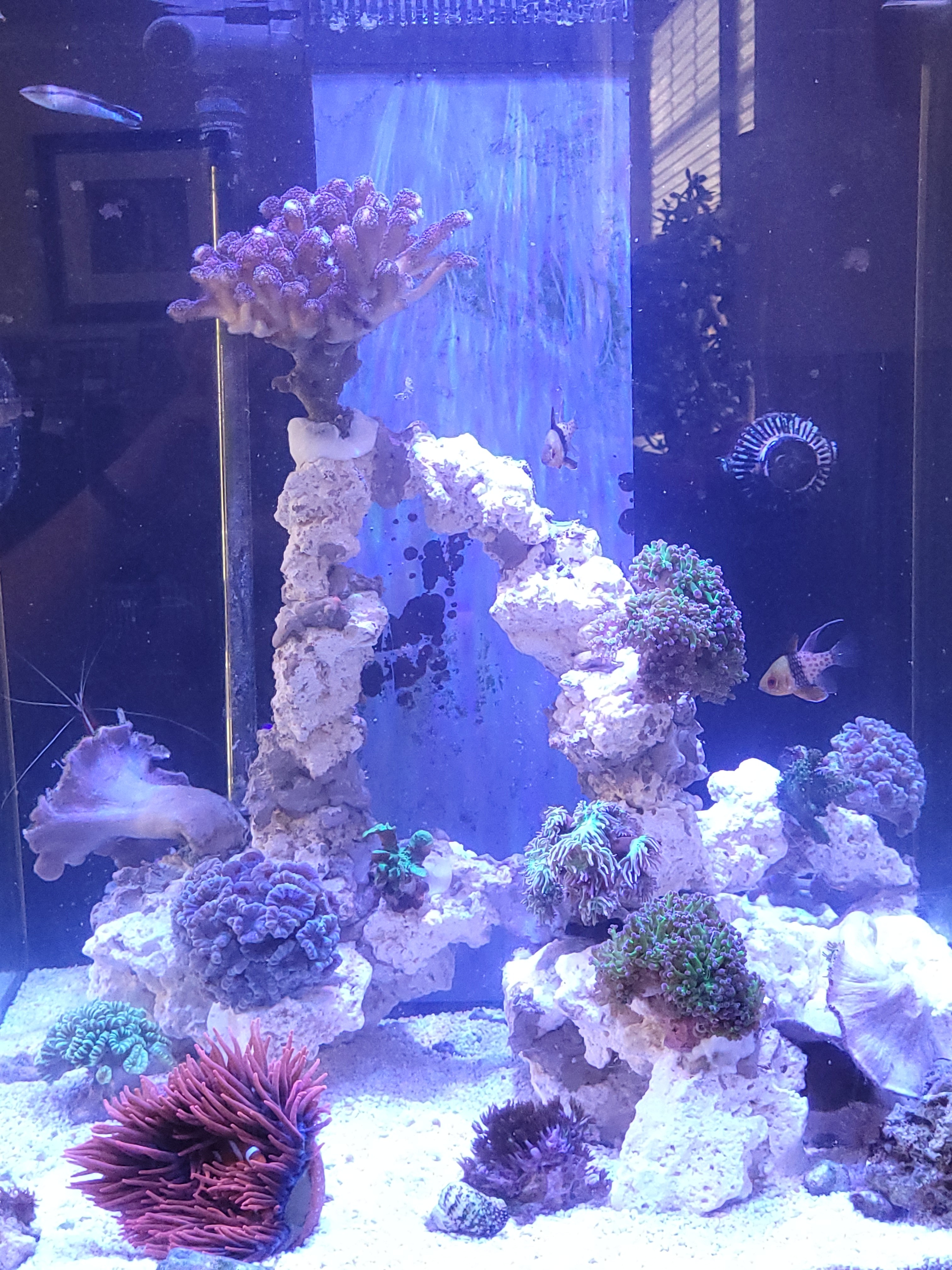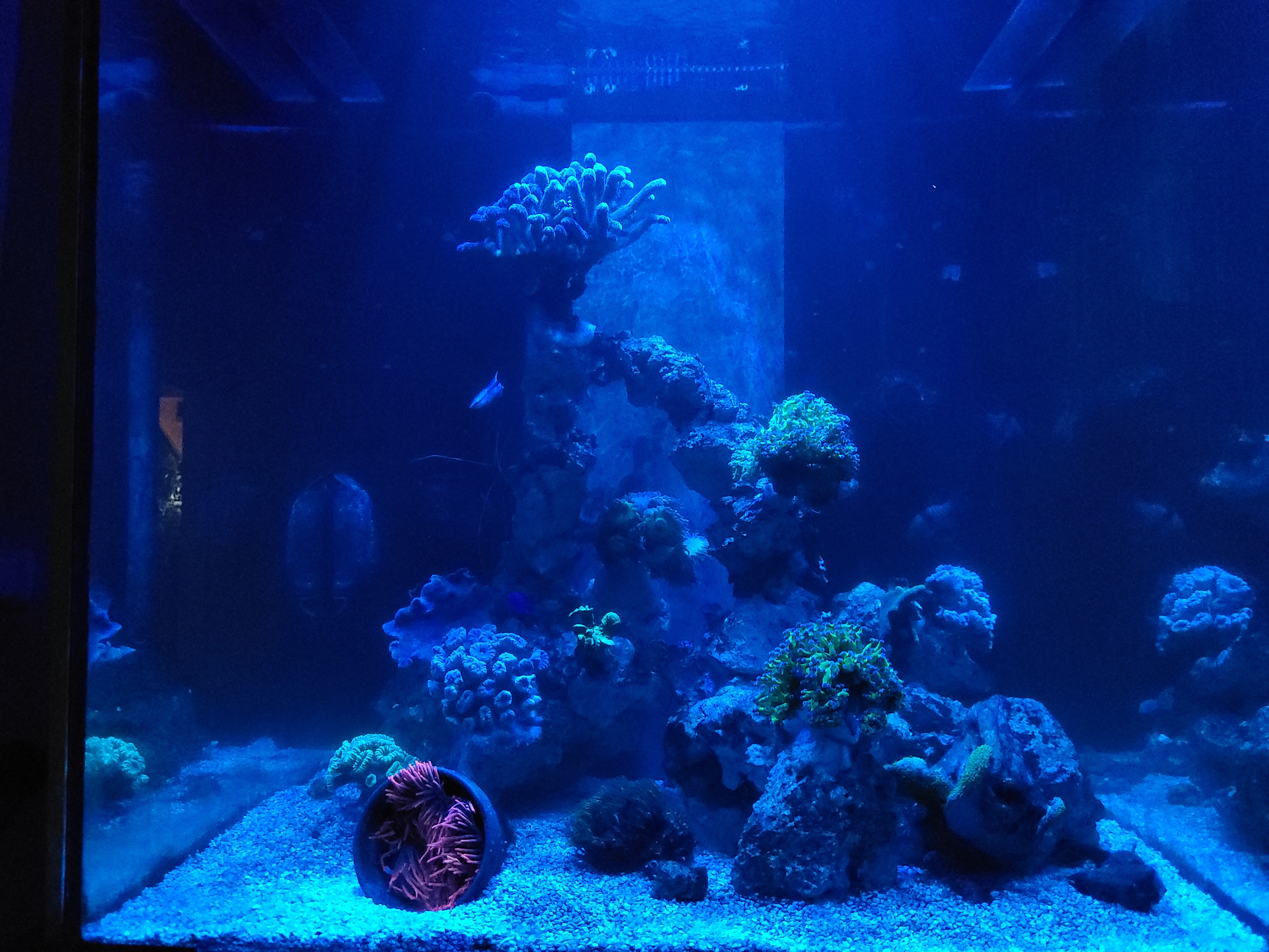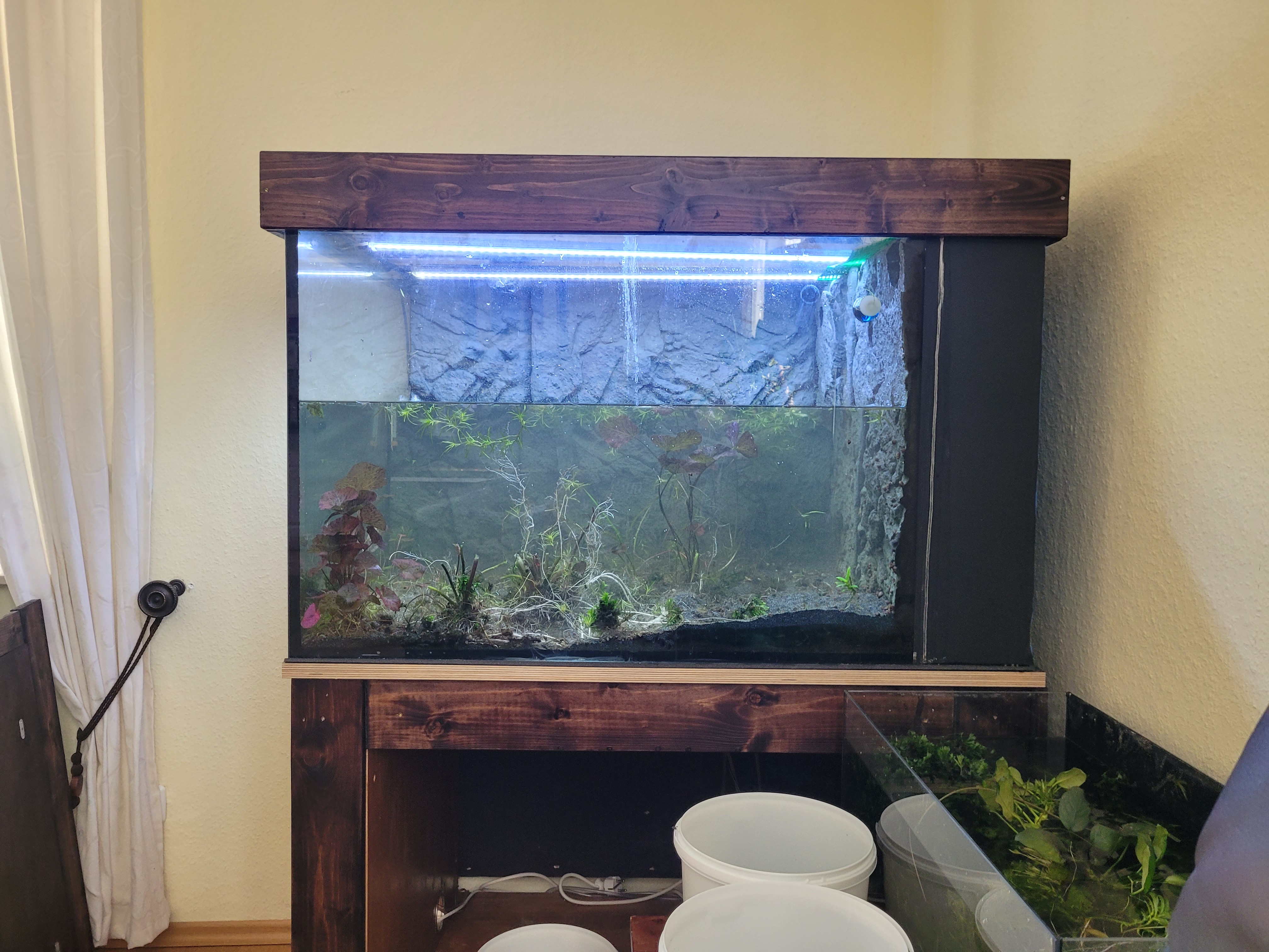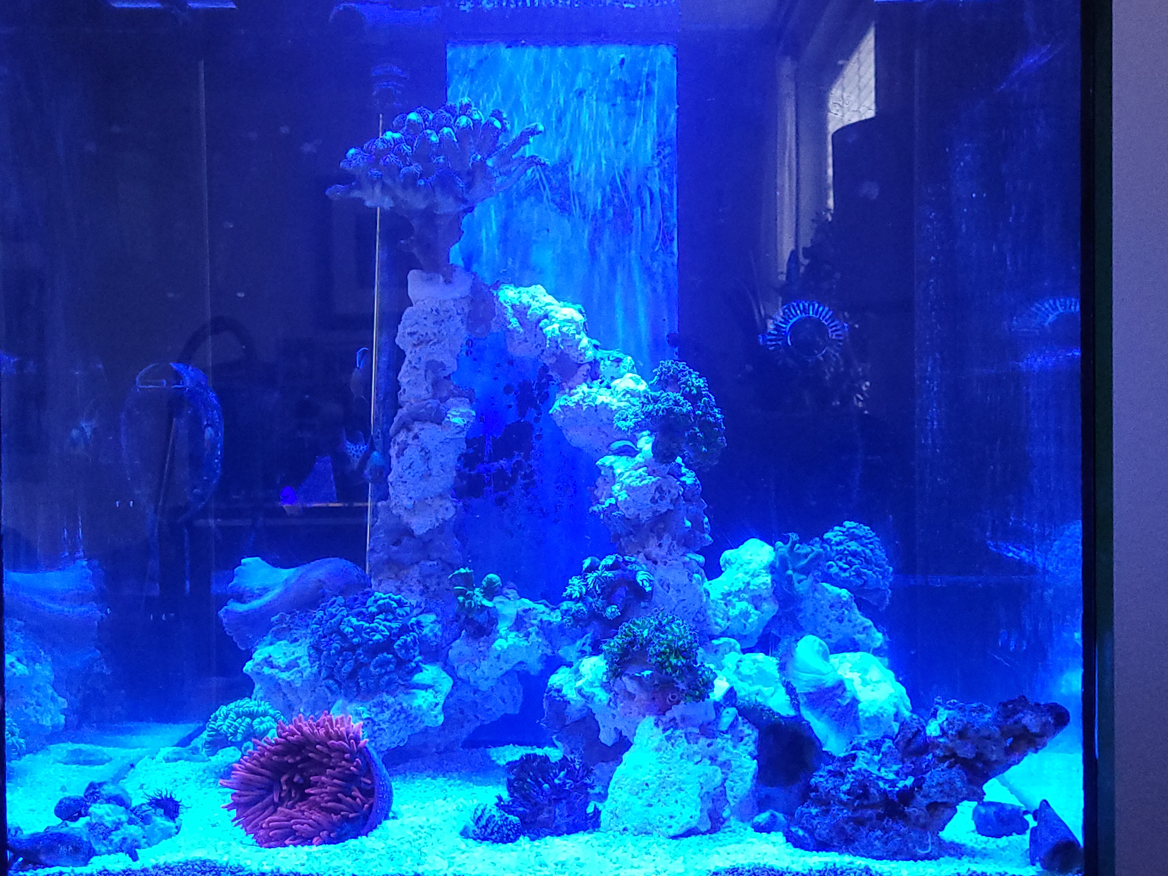 Wie in der Vorstellung bereits geschrieben möchte ich in die Meerwasseraquaristik einsteigen. Hierfür soll das 420l (100x70x60cm) im Wohnzimmer weichen und einem neuen Becken gleicher Grundfläche Platz machen. Das Becken hat einfach zu viele Macken um hier ein MW Becken einzurichten.