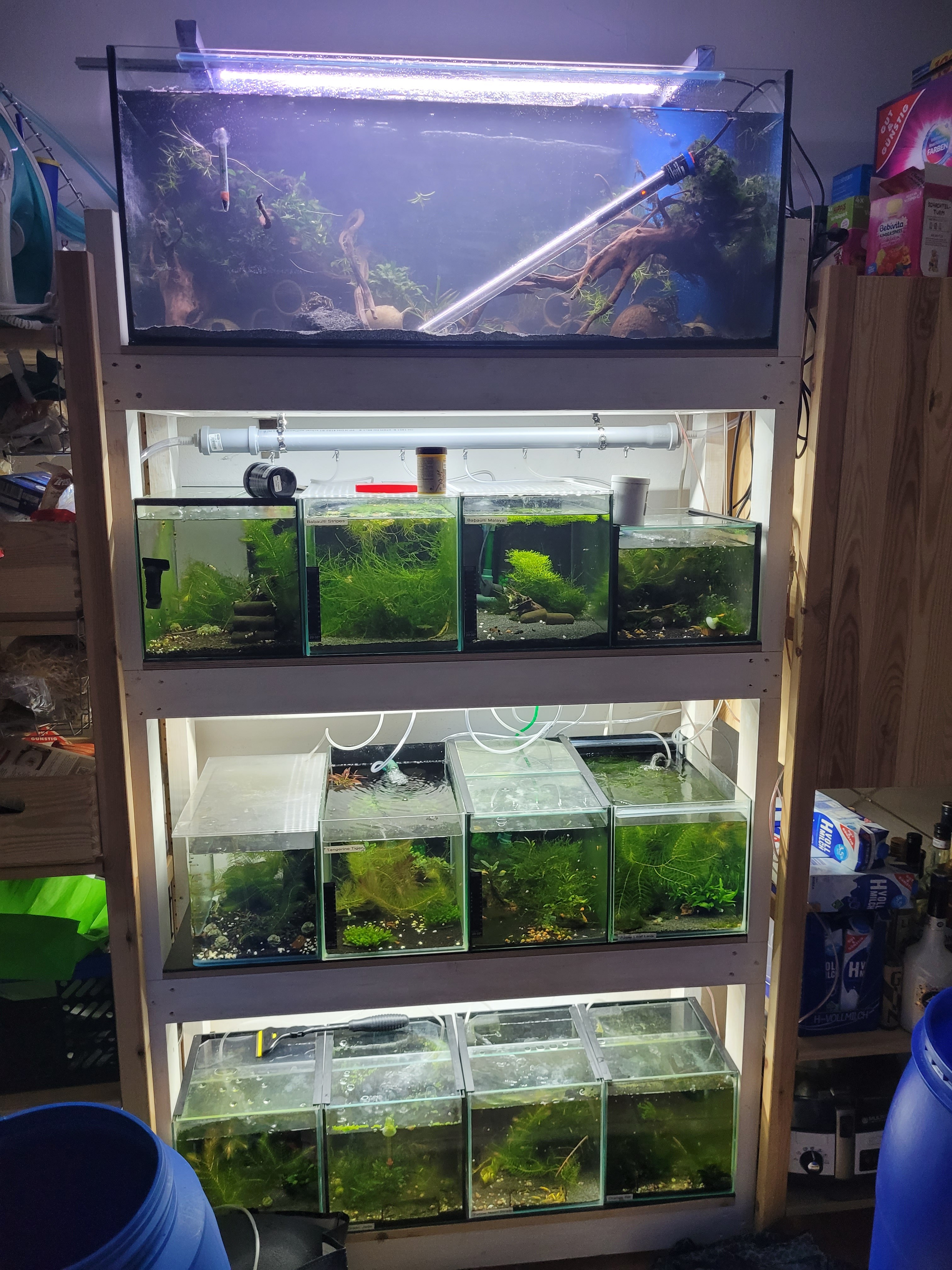 Für meine Garnelen verfüge ich über eine recht große Osmoseanlage mit Mischbettharzfilter sowie über einige Erfahrung im Aufsalzen und Messen von Wasserwerten. Von vorherigen Süßwassersetups liegen hier noch Tunze Strömungspumpen (2x 6015 1x 6040) sowie eine Blau Rückförderpumpe Reef Motion 4Kdc herum. Nun ist die Frage was für den Einstieg/Umstieg in/auf Meerwasser nötig ist.
