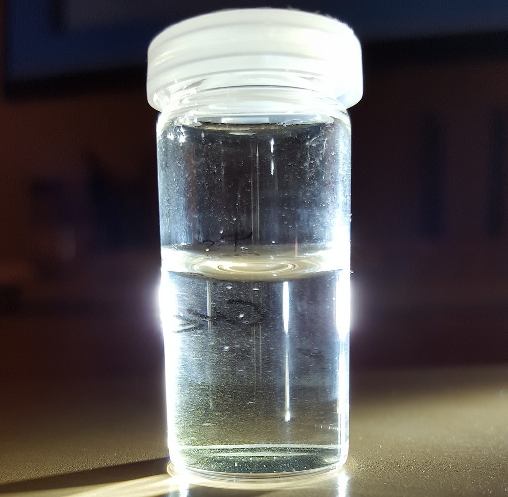 Die Dichte ist hier halbiert, da ich die Lösung gestern in zwei zusätzliche (Meplat-)Flaschen geteilt habe, als Backup-Kultur.