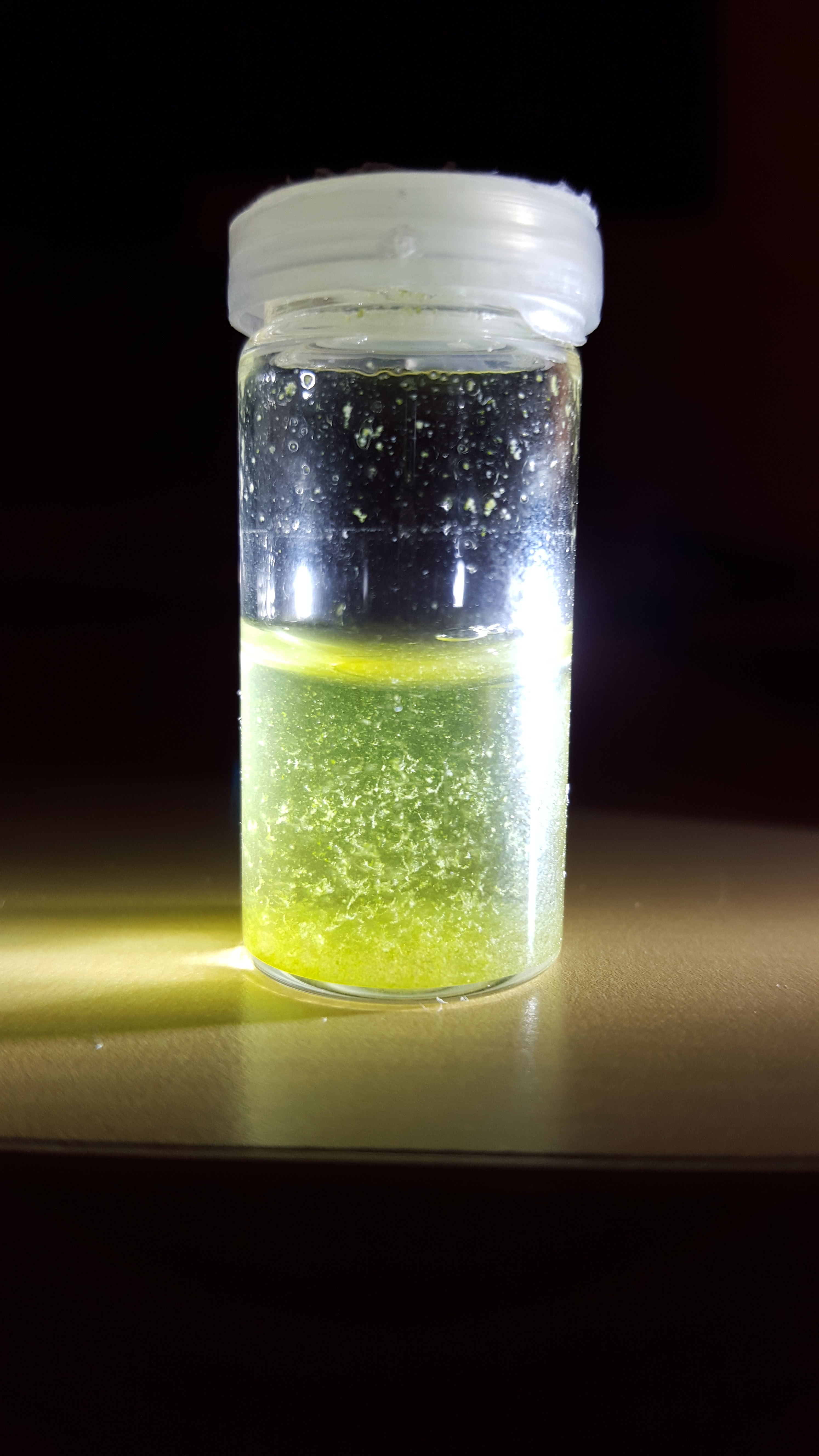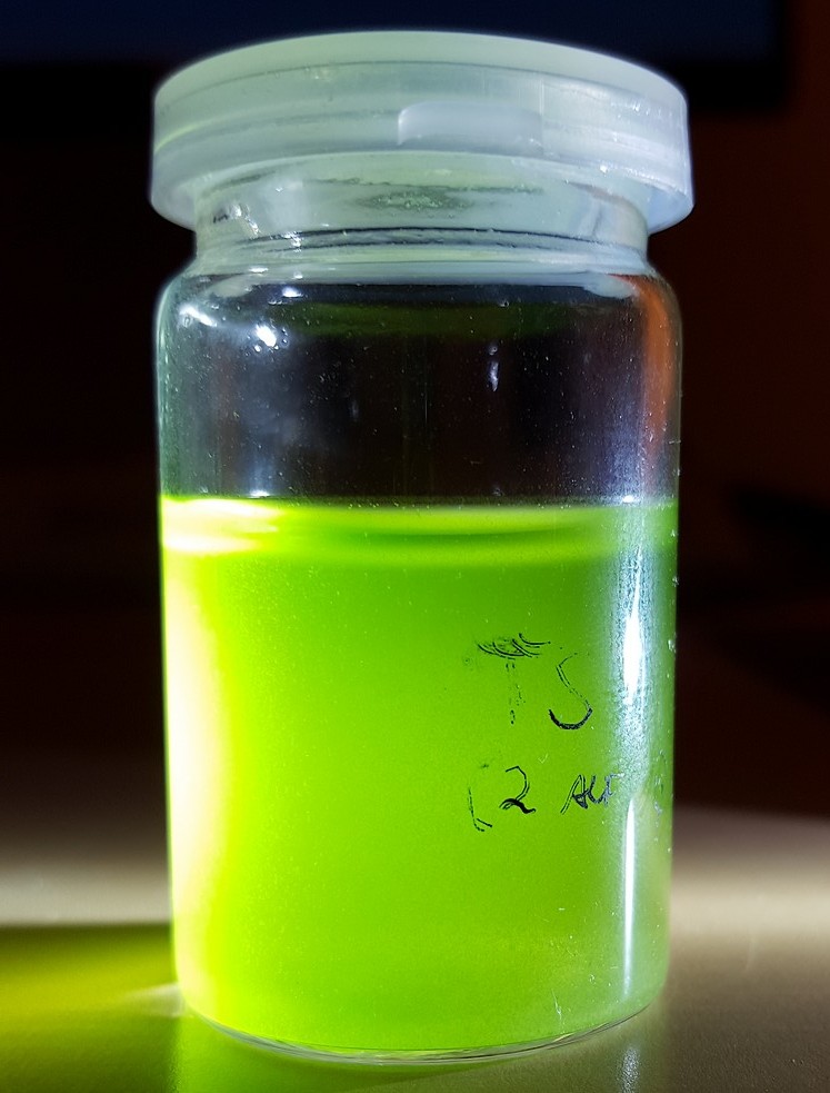 Angefangen hat bei mir alles mit den "Urzeitkrebsen" (Artemia), die ich aus Nostalgie wegen Yps-/Mickey-Maus-Heften mal wieder züchten wollte. Dazu gehörte auch "natürliches" Futter, also flugs Phytoplankton (Nannochloropsis) bestellt und war von dieser natürlich grünen Farbe ganz angetan. Dann habe ich einen Blogbeitrag gesehen wo jemand aus seinem Reaktor eine Wohnzimmerlampe gebastelt hat und habe gedacht: "Sowas will ich auch!". Aber dieses lästige Gesprudele nervt doch auf Dauer...