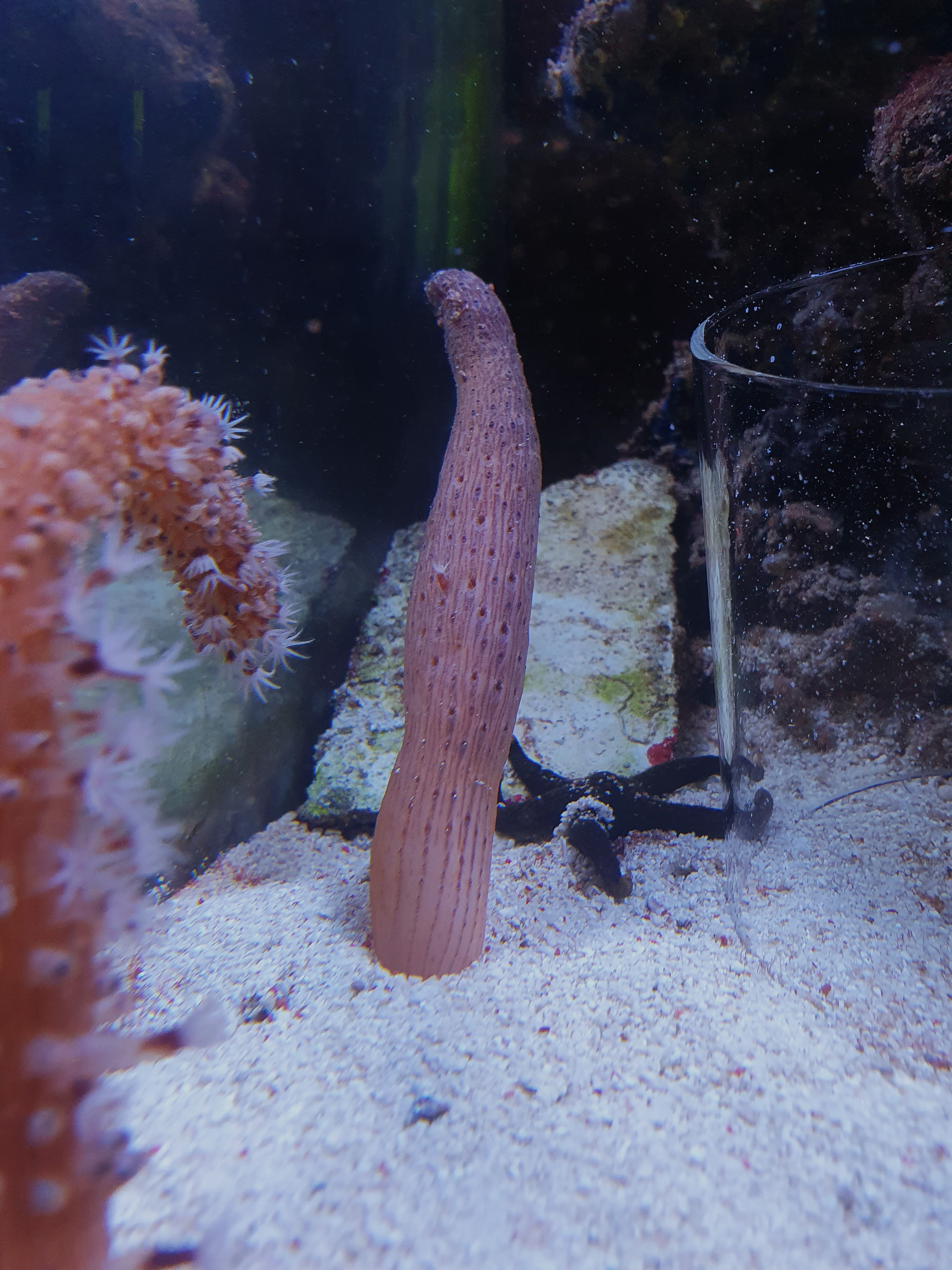 Die gekauften Seefedern besitzen ein 11 cm langes Skelett und benötigen daher ein Sandbett von etwas mehr als 11 cm.