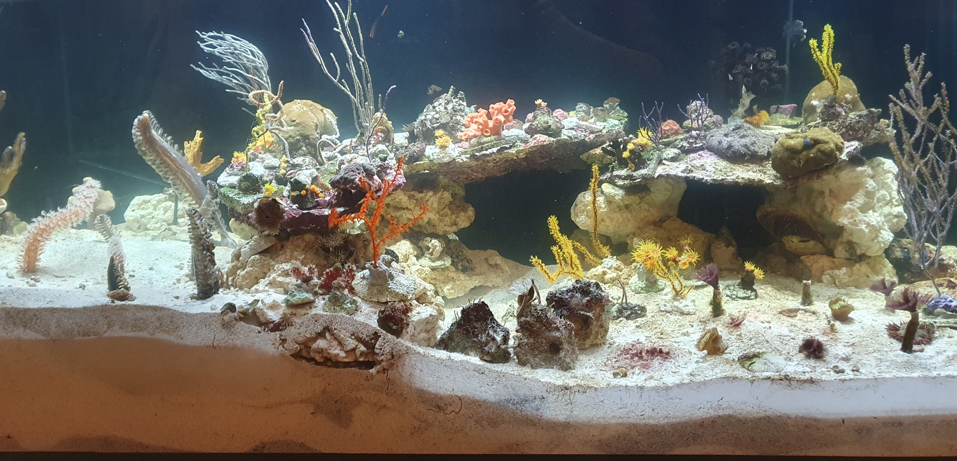 Becken mit Azoo-Tieren, Gorgonien, Peitschenkorallen, Tubastraea, Seefedern